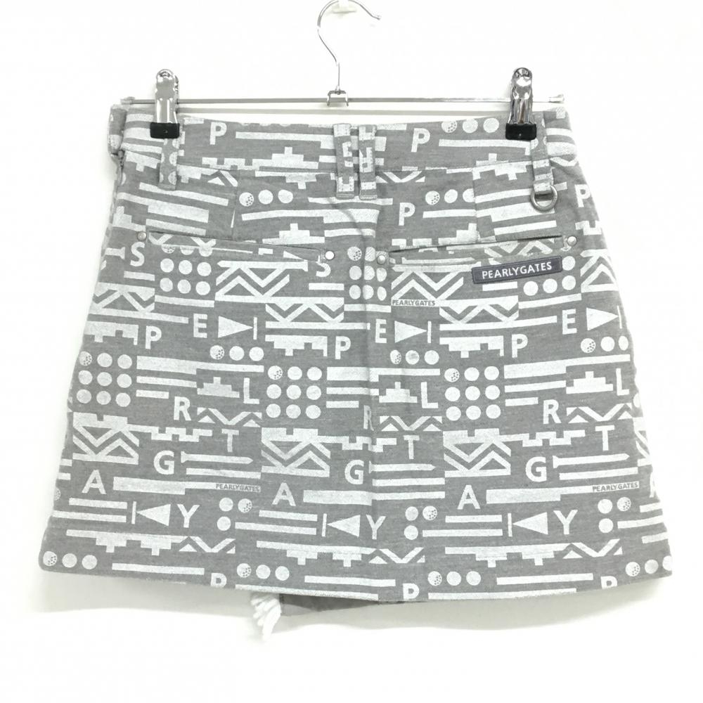 【美品】パーリーゲイツ スカート グレー×白 総柄 レディース 0(S) ゴルフウェア PEARLY GATES