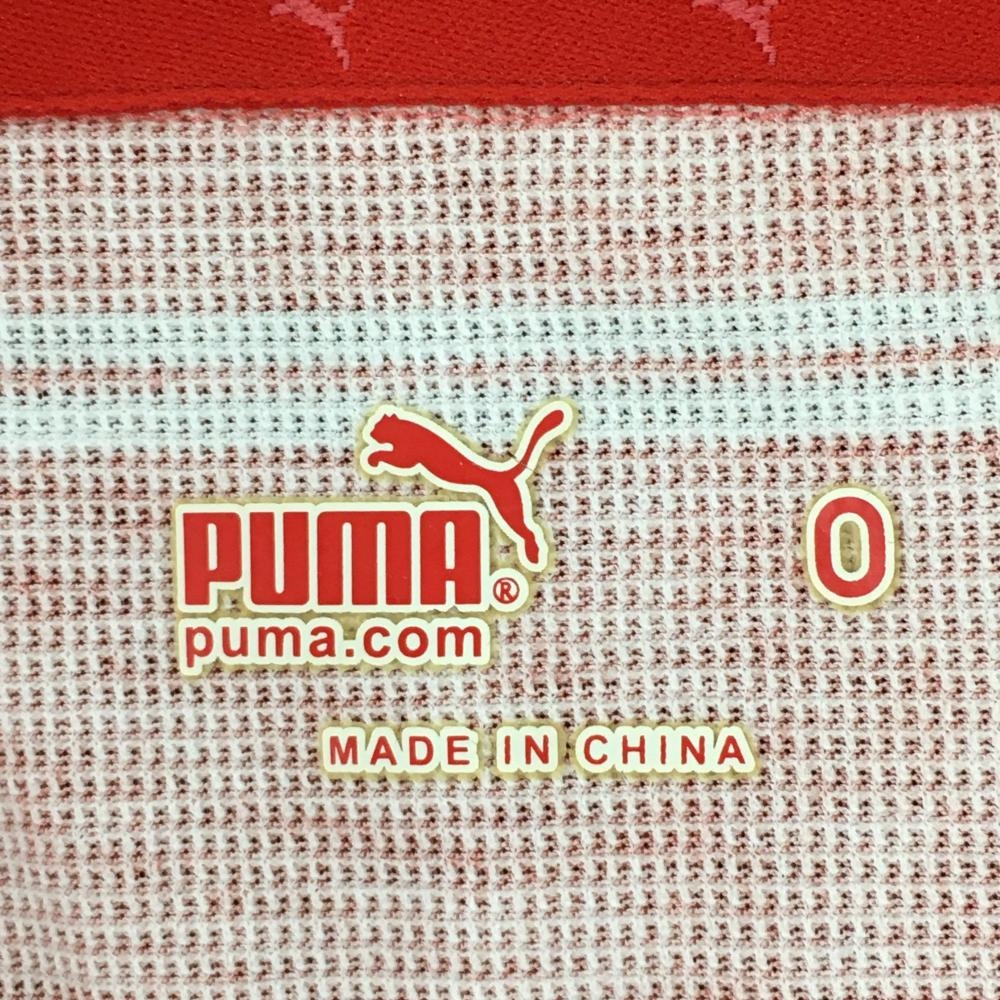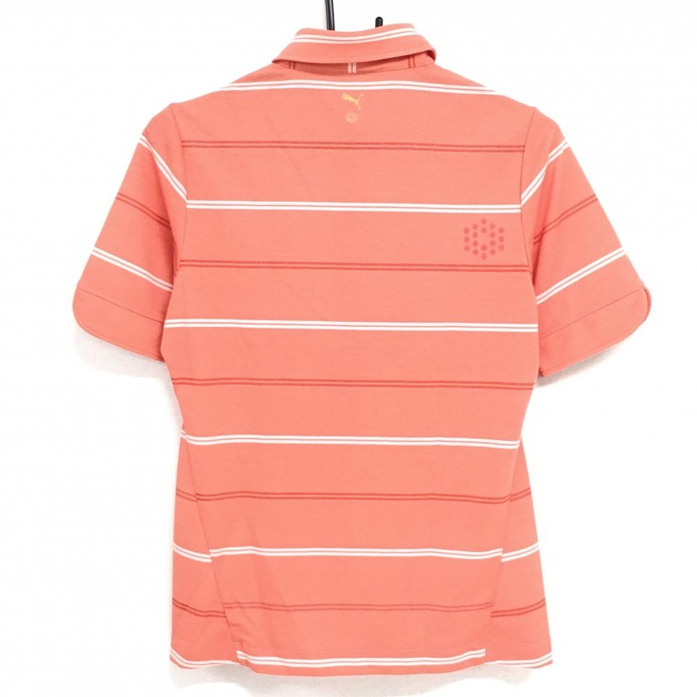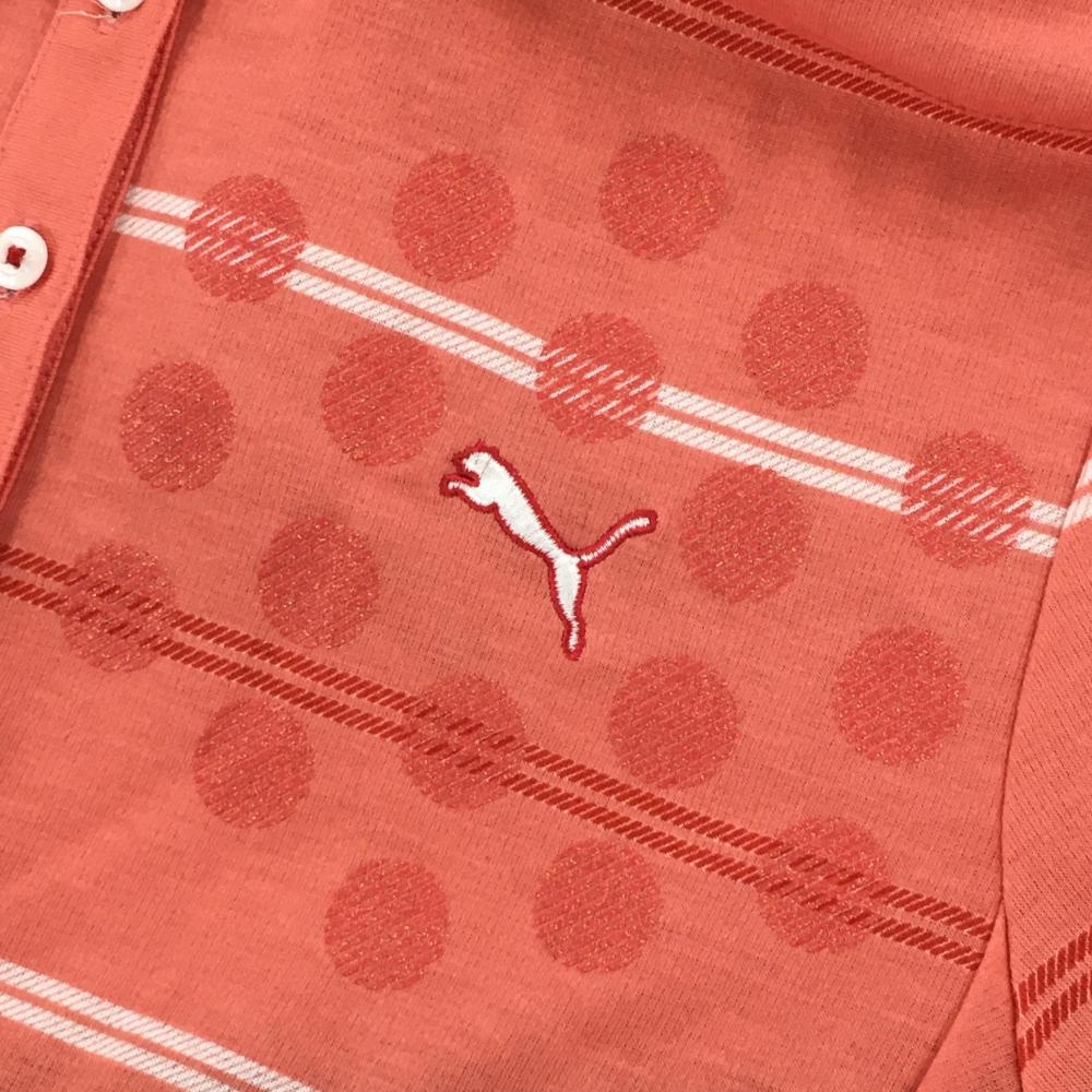 【超美品】プーマ 半袖ポロシャツ サーモンピンク×白 ボーダー レディース O ゴルフウェア PUMA