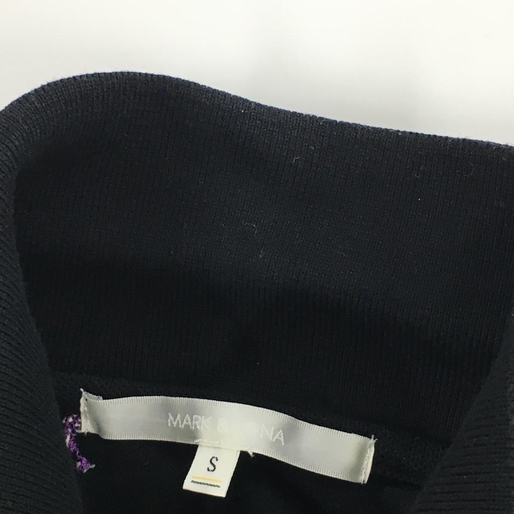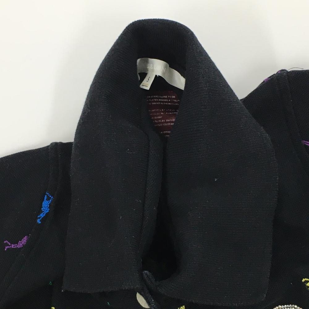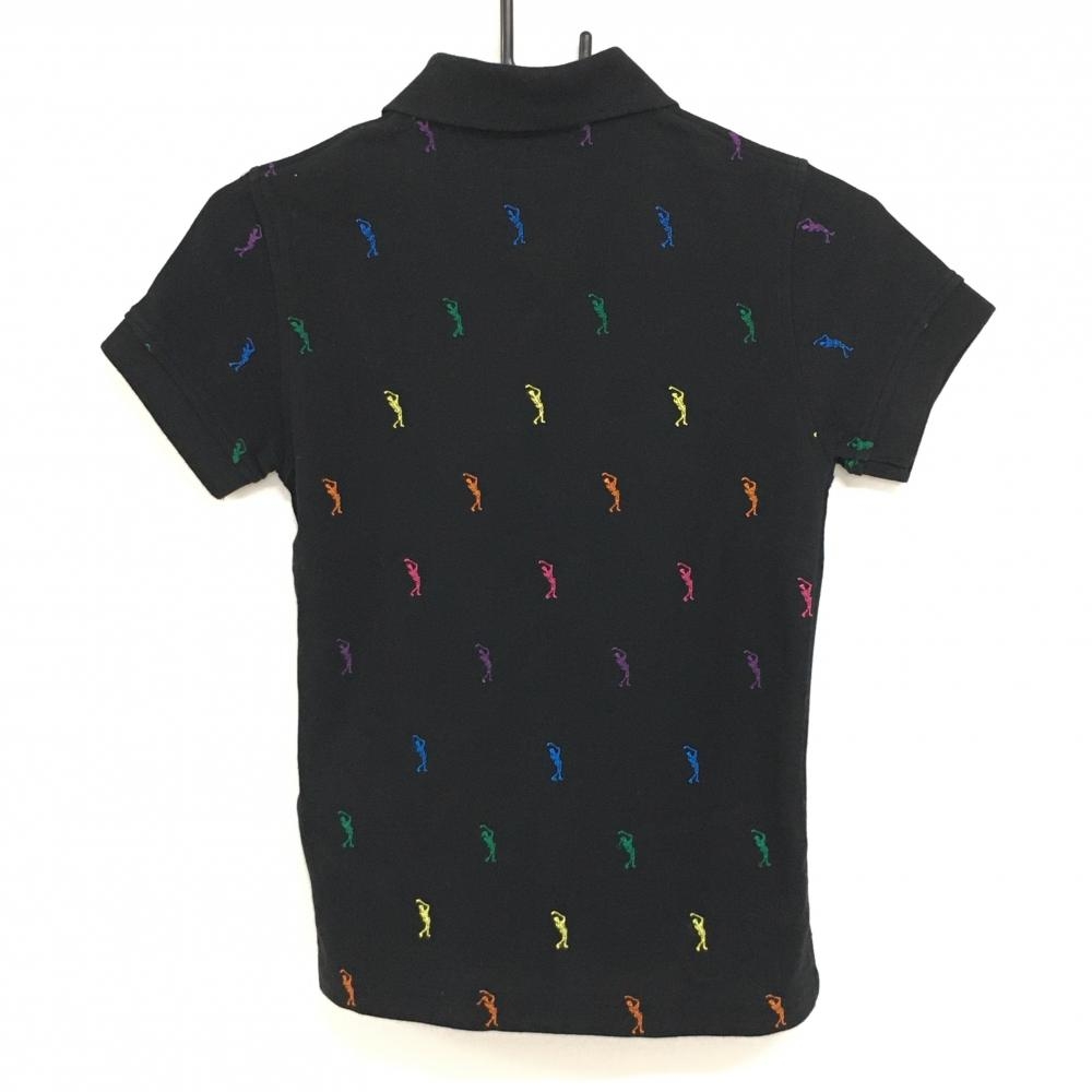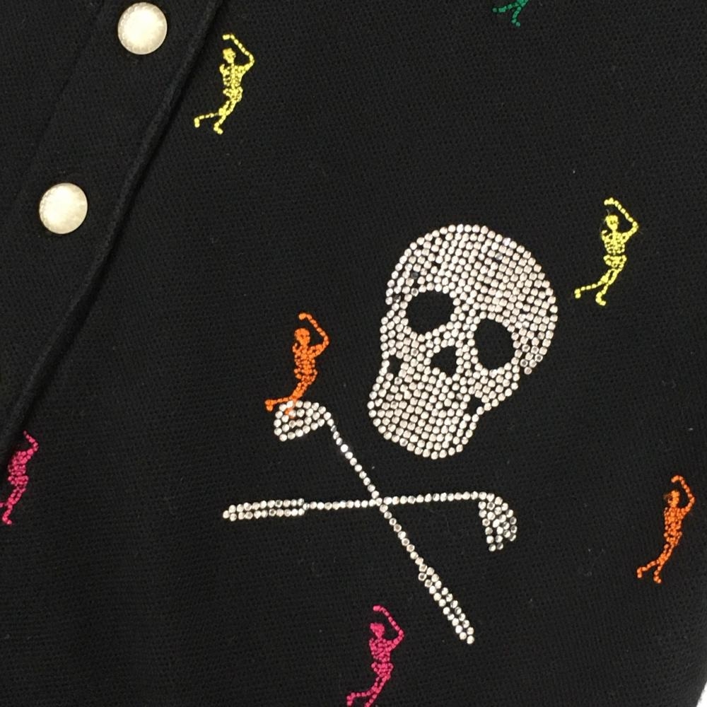 マークアンドロナ 半袖ポロシャツ 黒×マルチカラー 刺しゅう総柄 ラインストーンスカル レディース S ゴルフウェア MARK&LONA