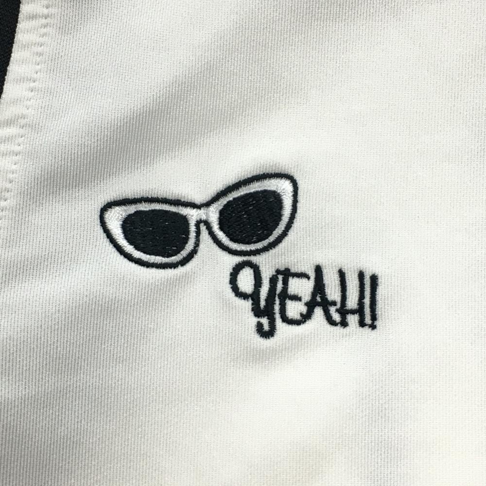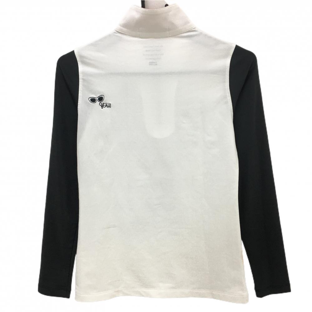 【美品】ルコックゴルフ 長袖ハイネックシャツ 白×黒 ハーフジップ フロントプリント レディース M ゴルフウェア le coq sportif