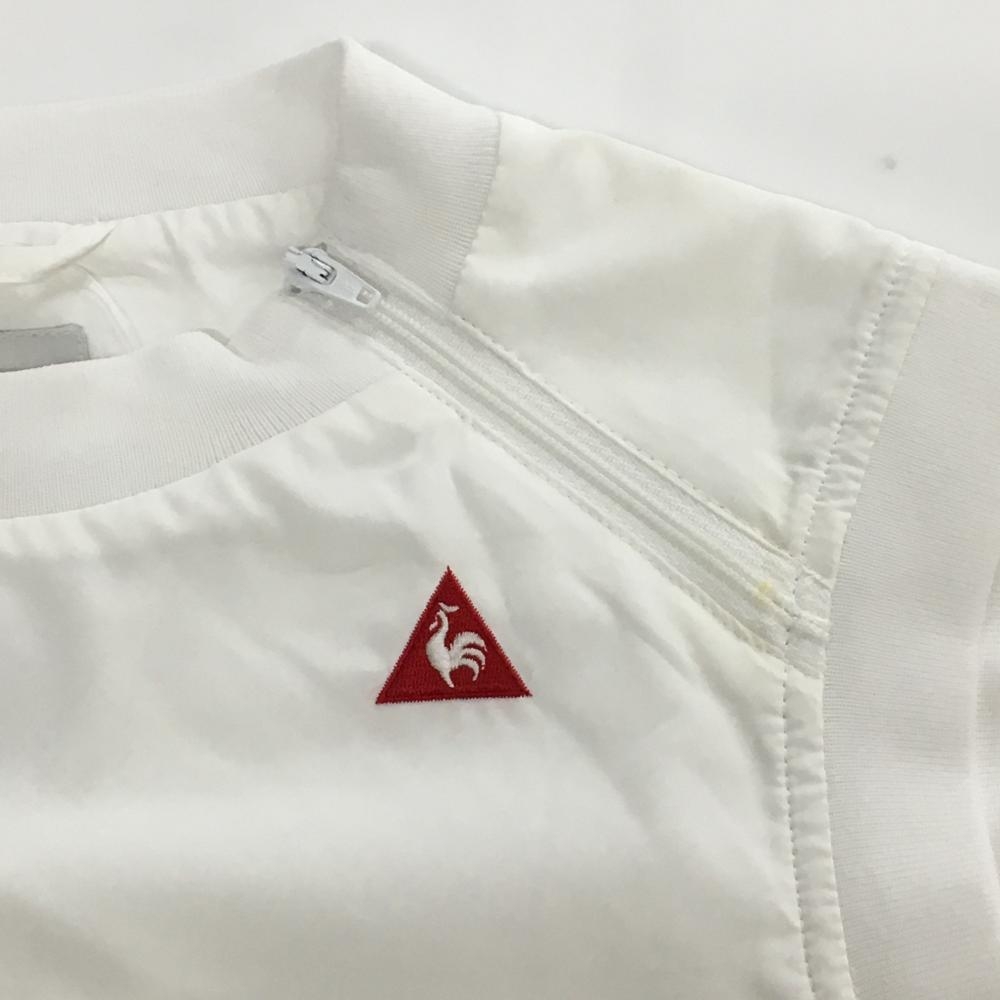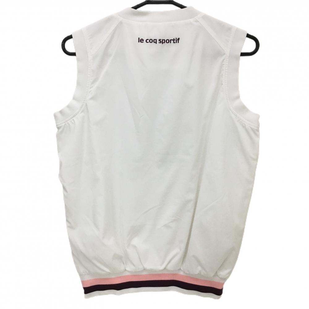 【美品】ルコック アウターベスト 白×パープル ロゴ刺しゅう 肩・サイドジップ レディース M ゴルフウェア le coq sportif