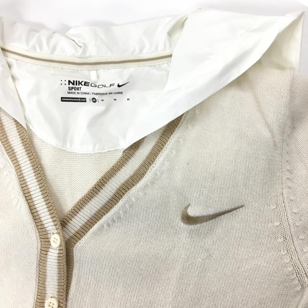 ナイキ ニットカーディガン 白×ベージュ フード付 レディース M ゴルフウェア NIKE