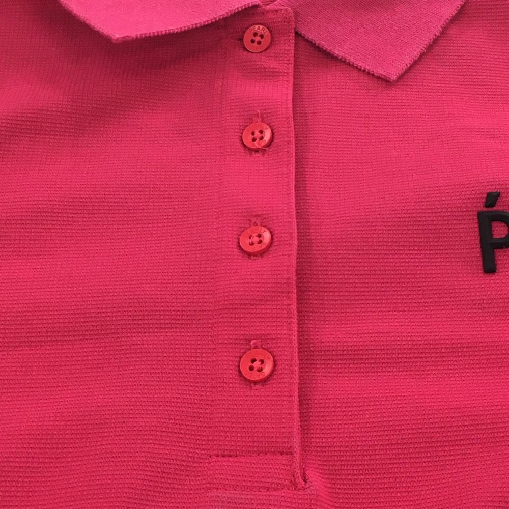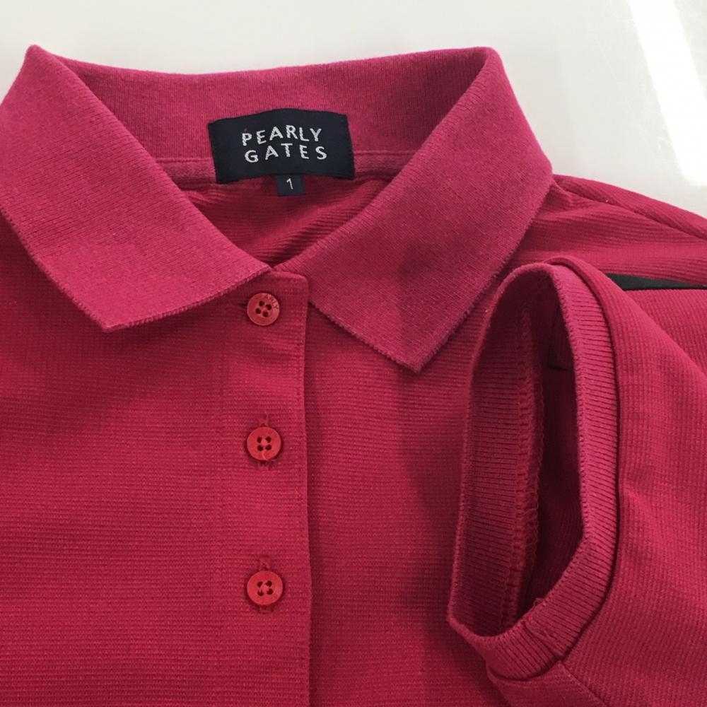 パーリーゲイツ 半袖ポロワンピース ピンク×黒 バックロゴ レディース 1(M) ゴルフウェア 2023年モデル PEARLY GATES
