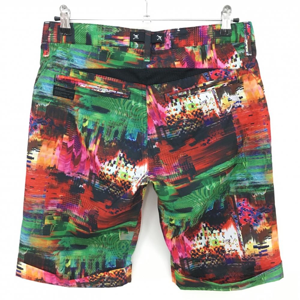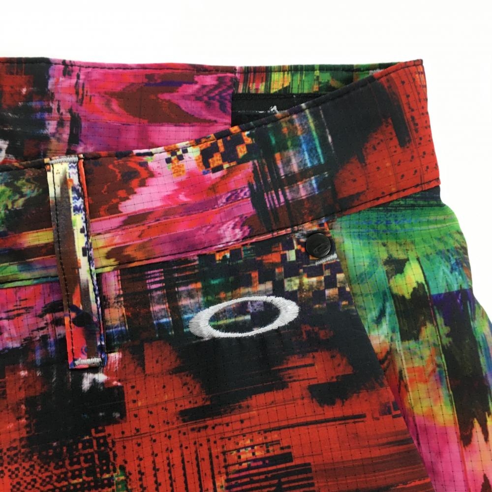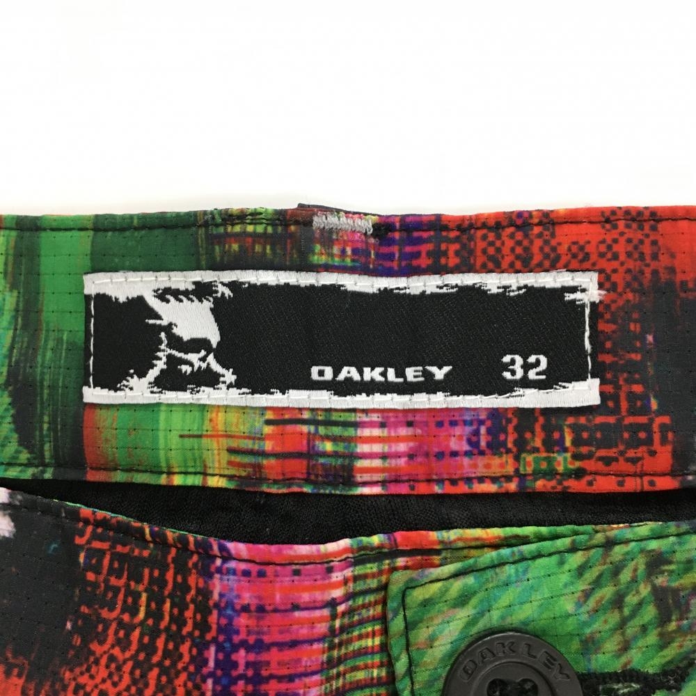 【美品】オークリー ハーフパンツ レッド×グリーン 総柄 メッシュ調 メンズ 32 ゴルフウェア Oakley