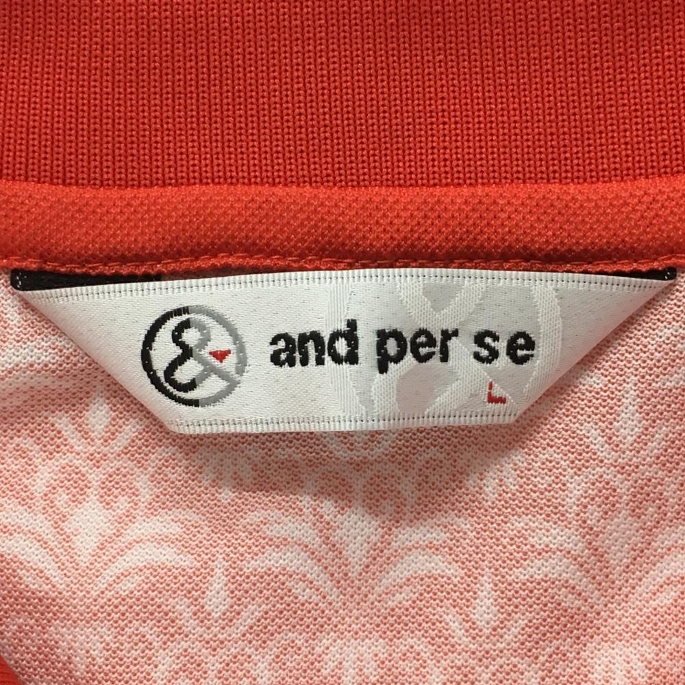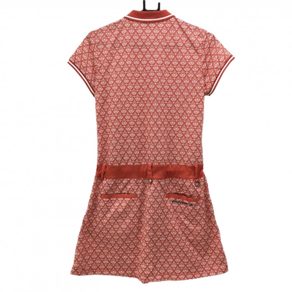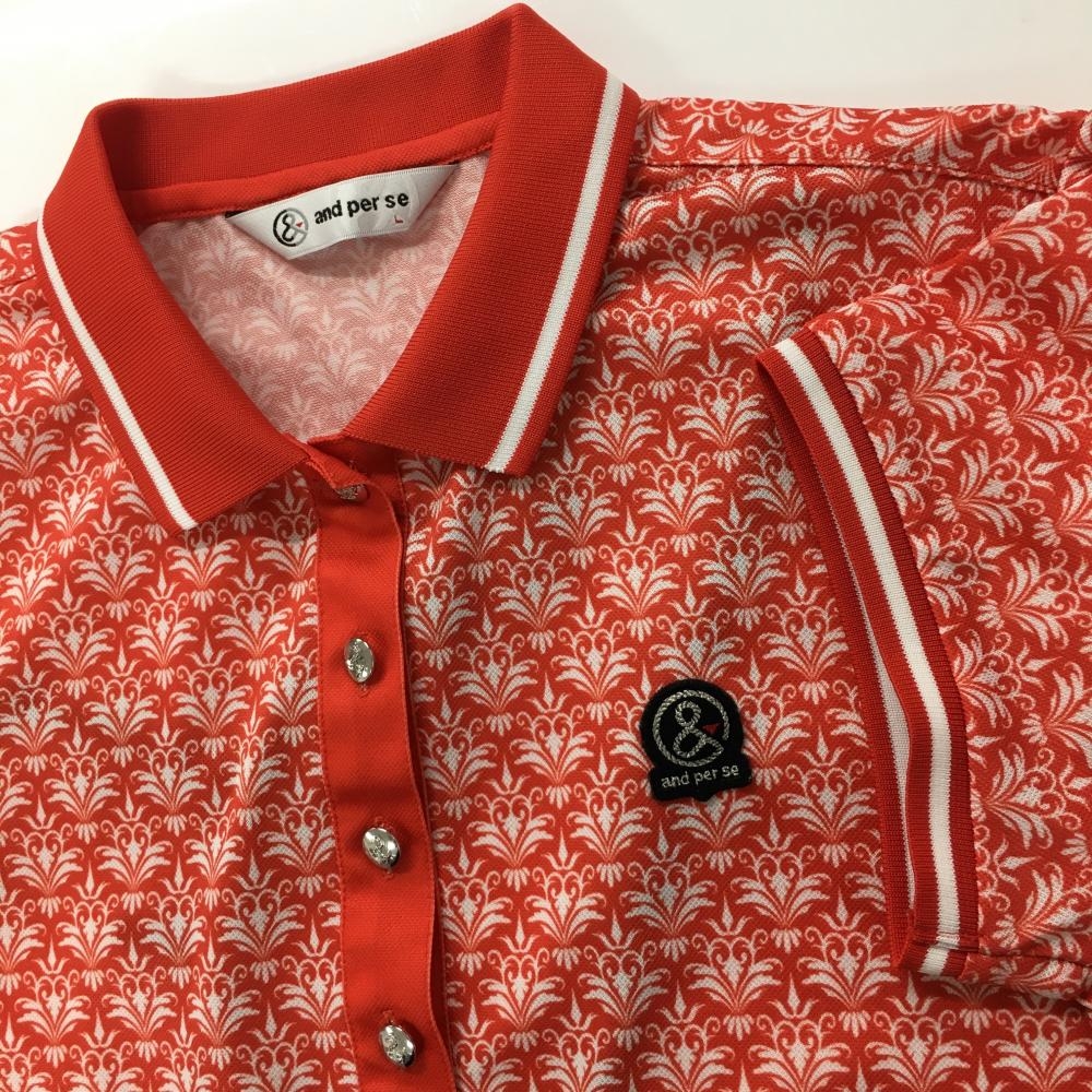 【超美品】アンパスィ 半袖ポロワンピース レッドオレンジ×白 総柄 ロゴワッペン レディース L ゴルフウェア and per se
