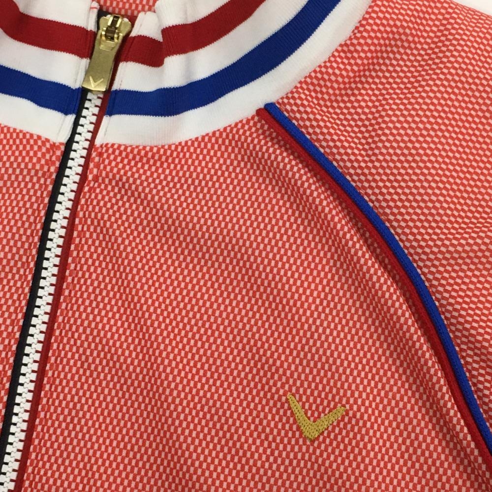 キャロウェイ ブルゾン レッド×白 細目ブロックチェック メッシュ裏地 レディース LL ゴルフウェア Callaway