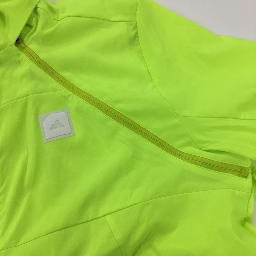 【美品】アディダス 2WAYジャケット 蛍光グリーン 袖着脱可 胸ロゴ メンズ M ゴルフウェア 2023年モデル adidas