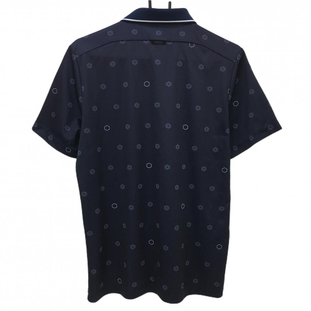 【超美品】プーマ 半袖ポロシャツ ネイビー×白 総柄 ロゴ メンズ L ゴルフウェア PUMA