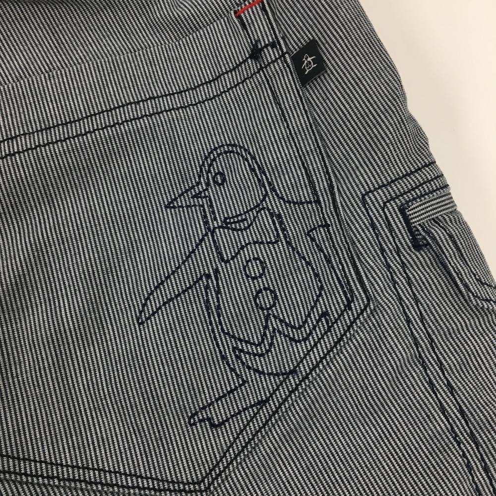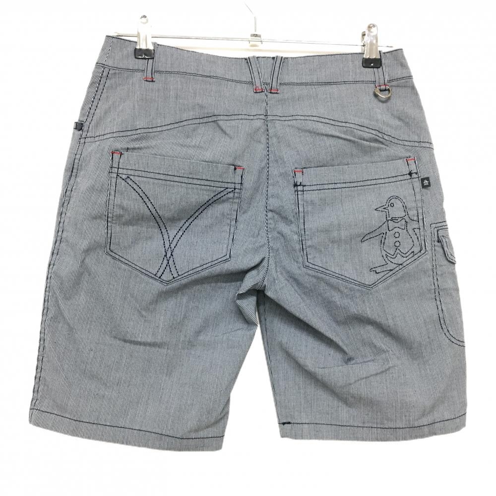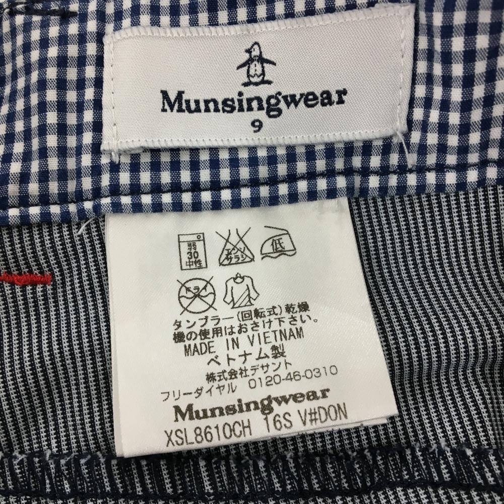 【超美品】マンシングウェア ハーフパンツ ダークネイビー×白 細ストライプ調 レディース 9 ゴルフウェア Munsingwear