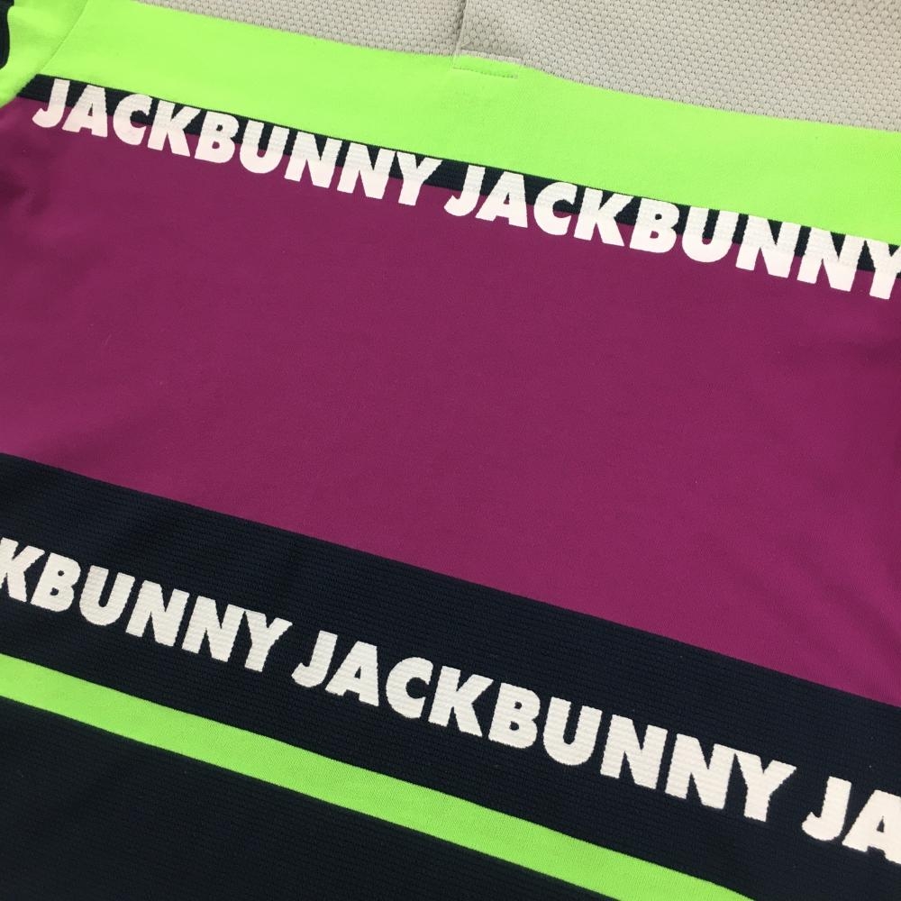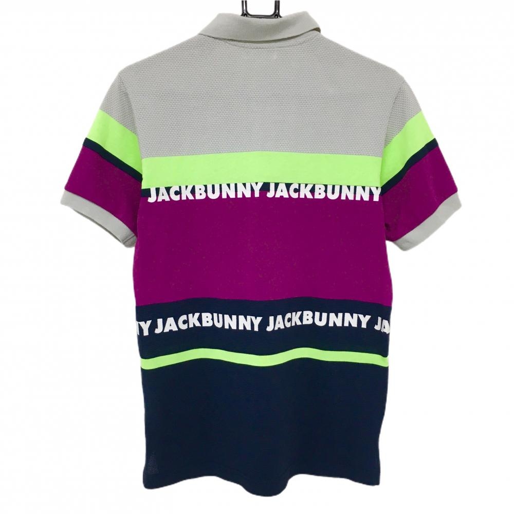 ジャックバニー 半袖ポロシャツ グレー×パープル×ネイビー ボーダー風 メンズ 4(M) ゴルフウェア Jack Bunny