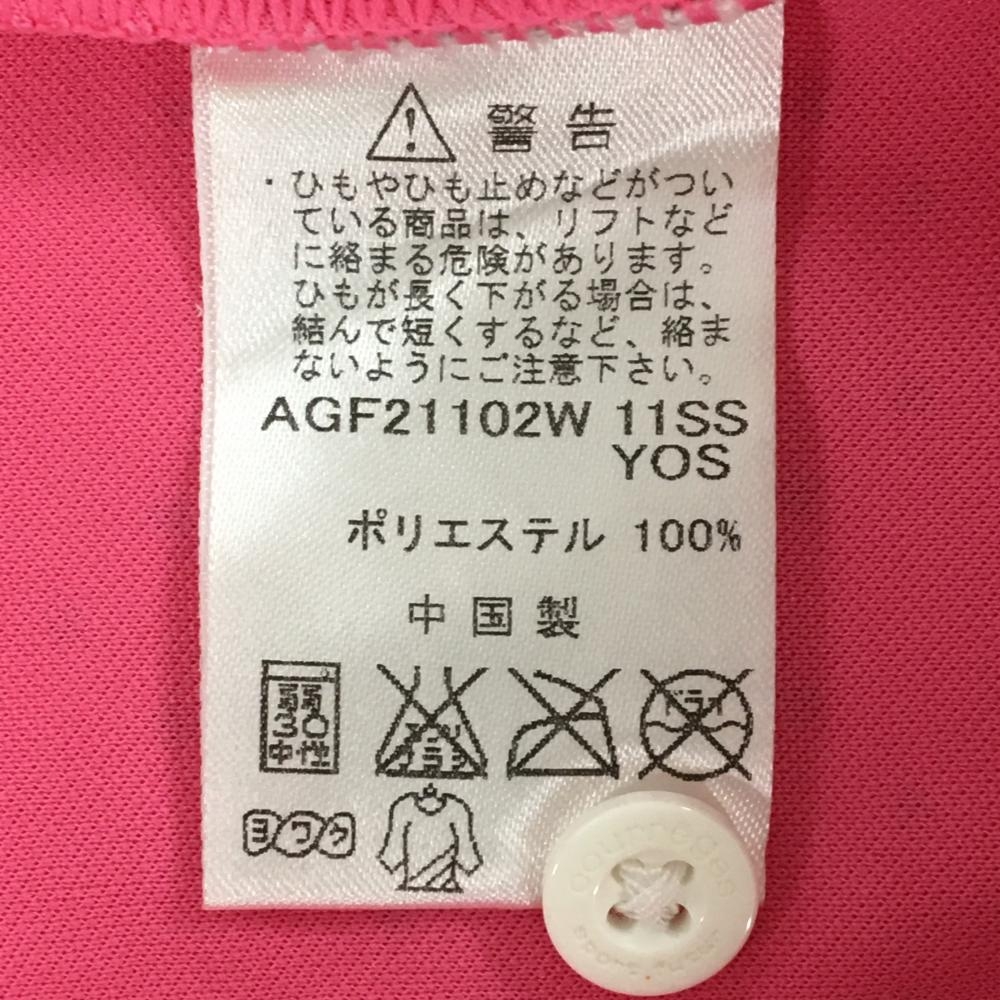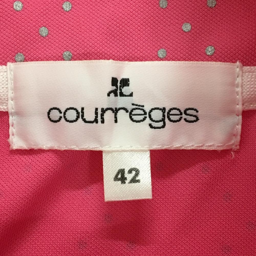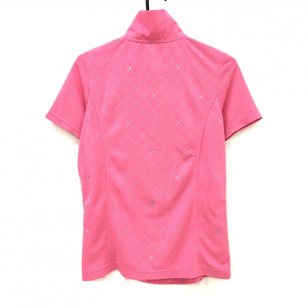 【超美品】クレージュ 半袖ハイネックシャツ ピンク×シルバー 総柄 レディース 42 ゴルフウェア courreges