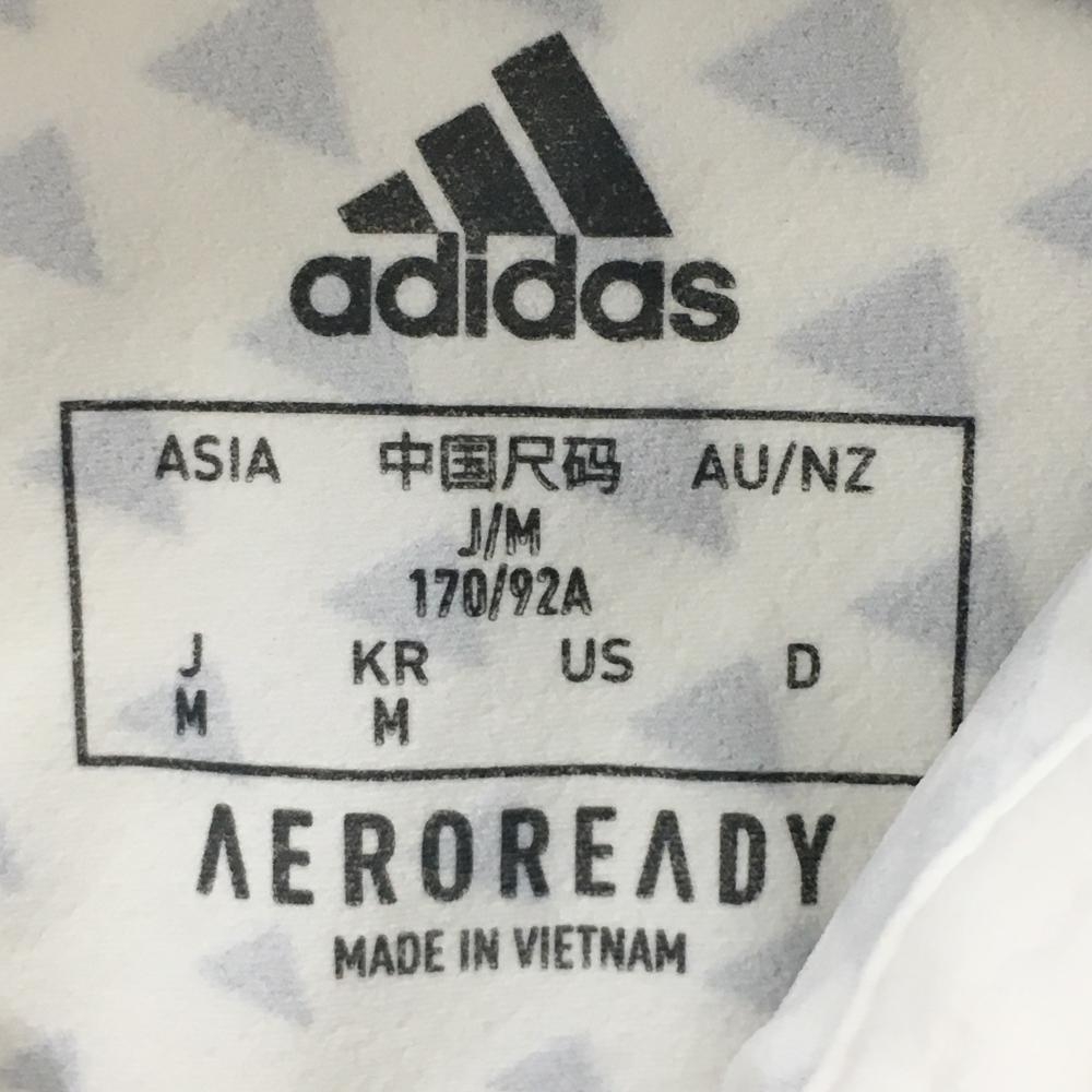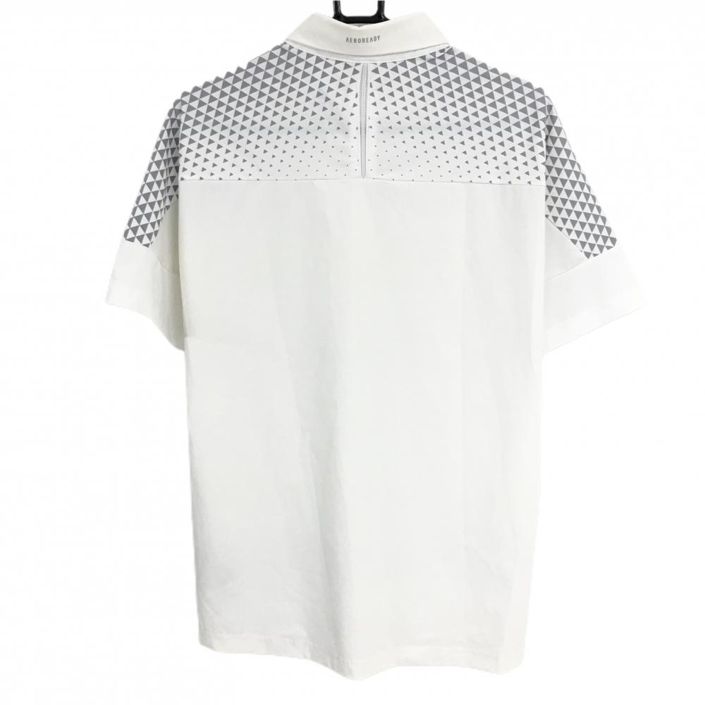 【超美品】アディダス 半袖ポロシャツ 白×グレー 肩三角形柄 AEROREADY メンズ M ゴルフウェア adidas