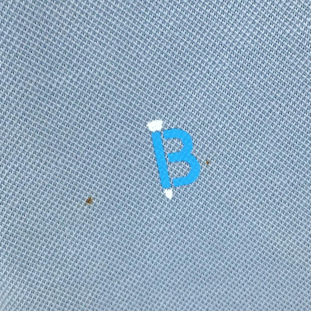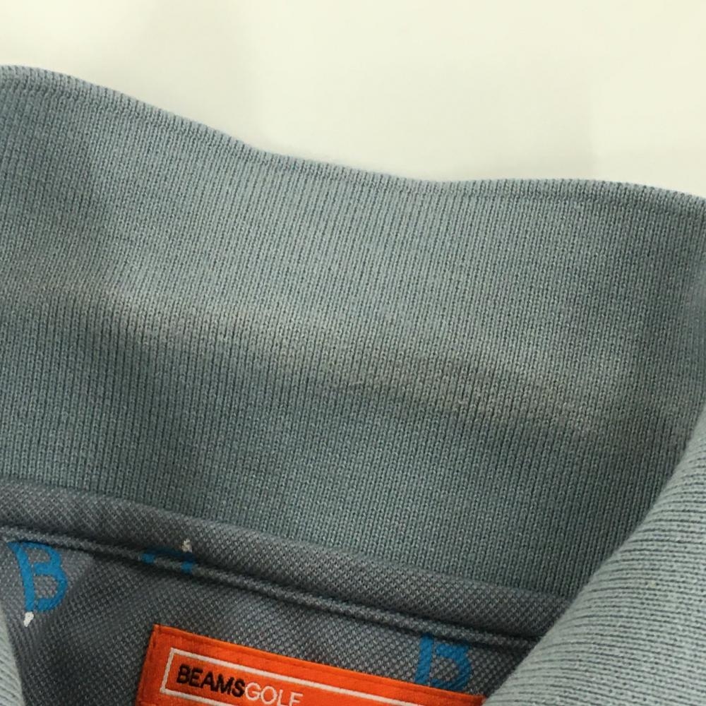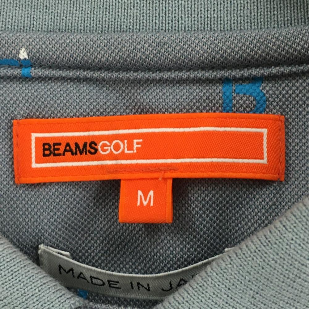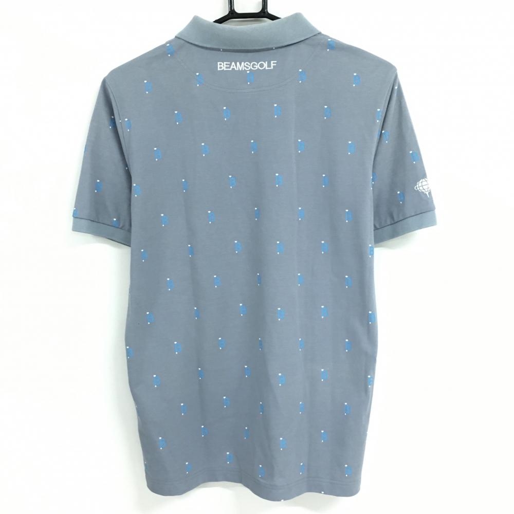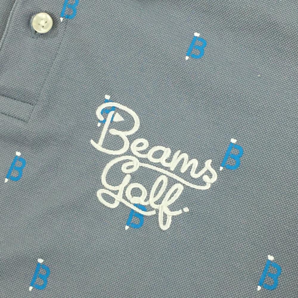 ビームスゴルフ 半袖ポロシャツ グレー×ブルー ロゴ総柄 メンズ M ゴルフウェア BEAMS GOLF