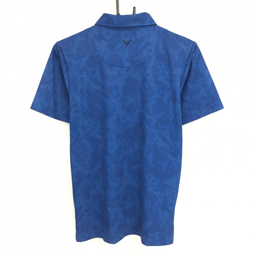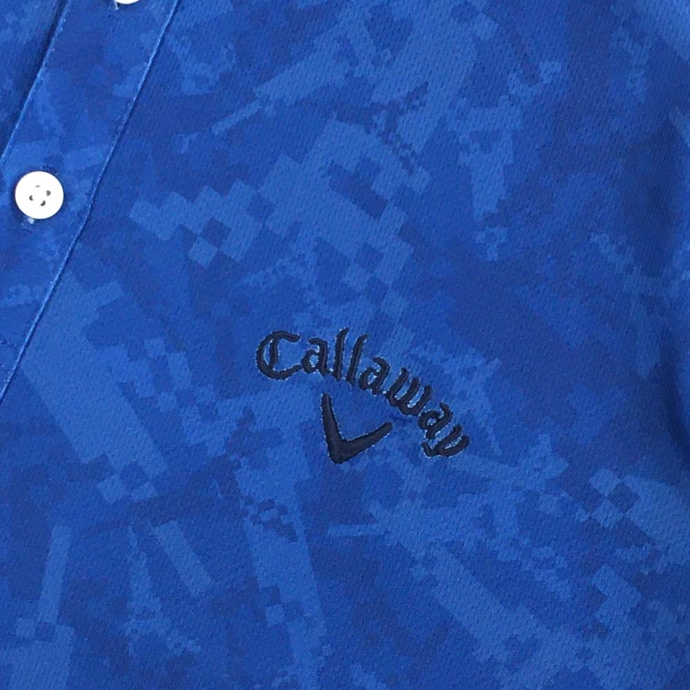 【超美品】キャロウェイ 半袖ポロシャツ ブルー 総柄 ロゴ刺しゅう メンズ M ゴルフウェア Callaway