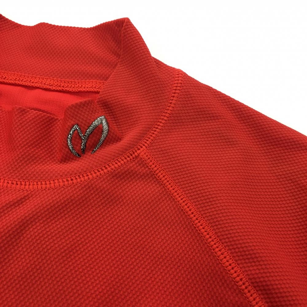 マスターバニー 長袖ハイネックシャツ レッド系 織生地 フロントロゴプリント メンズ 6(XL) ゴルフウェア MASTER BUNNY EDITION