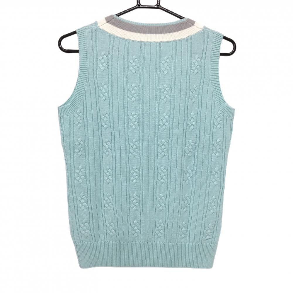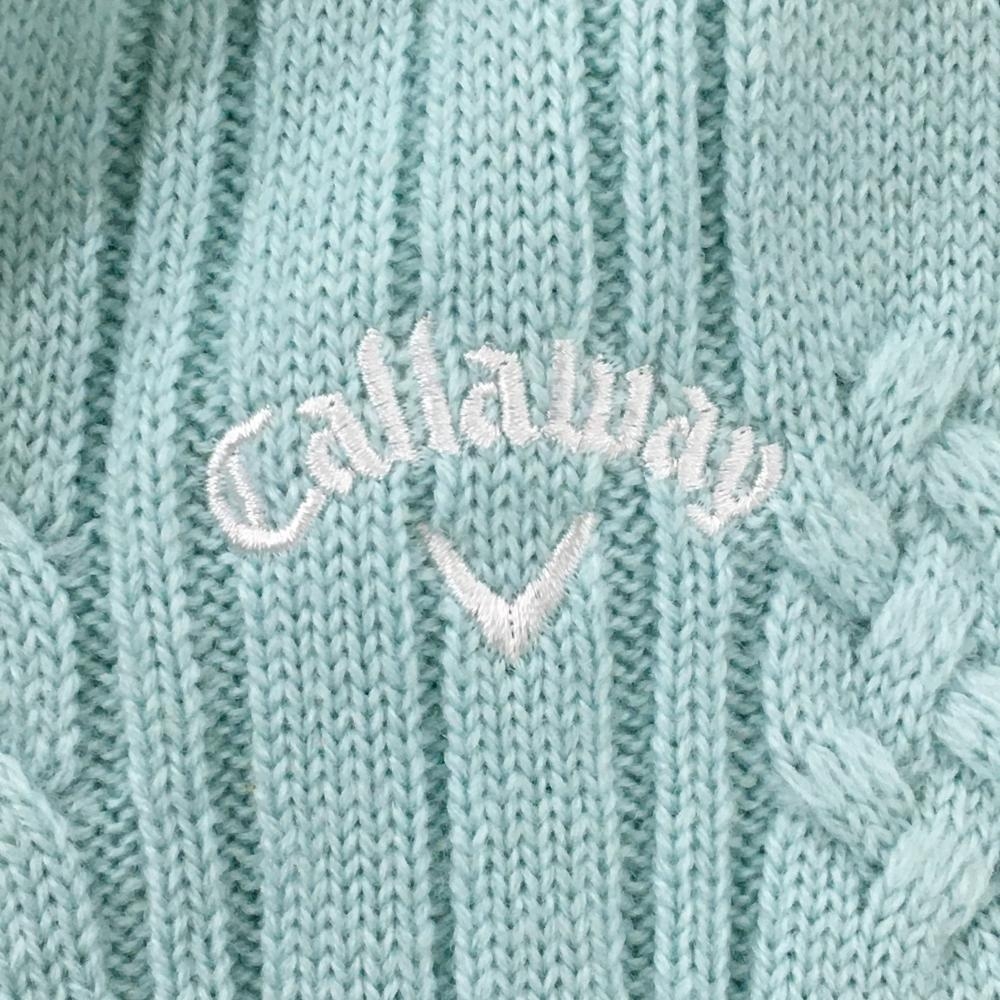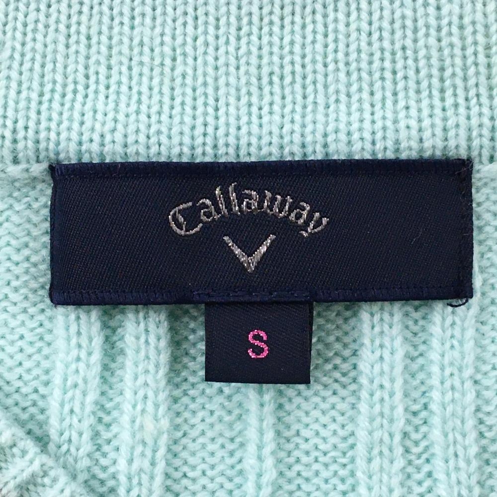 【美品】キャロウェイ ニットベスト ライトブルー×白 Vネック ロゴ刺しゅう レディース S ゴルフウェア Callaway