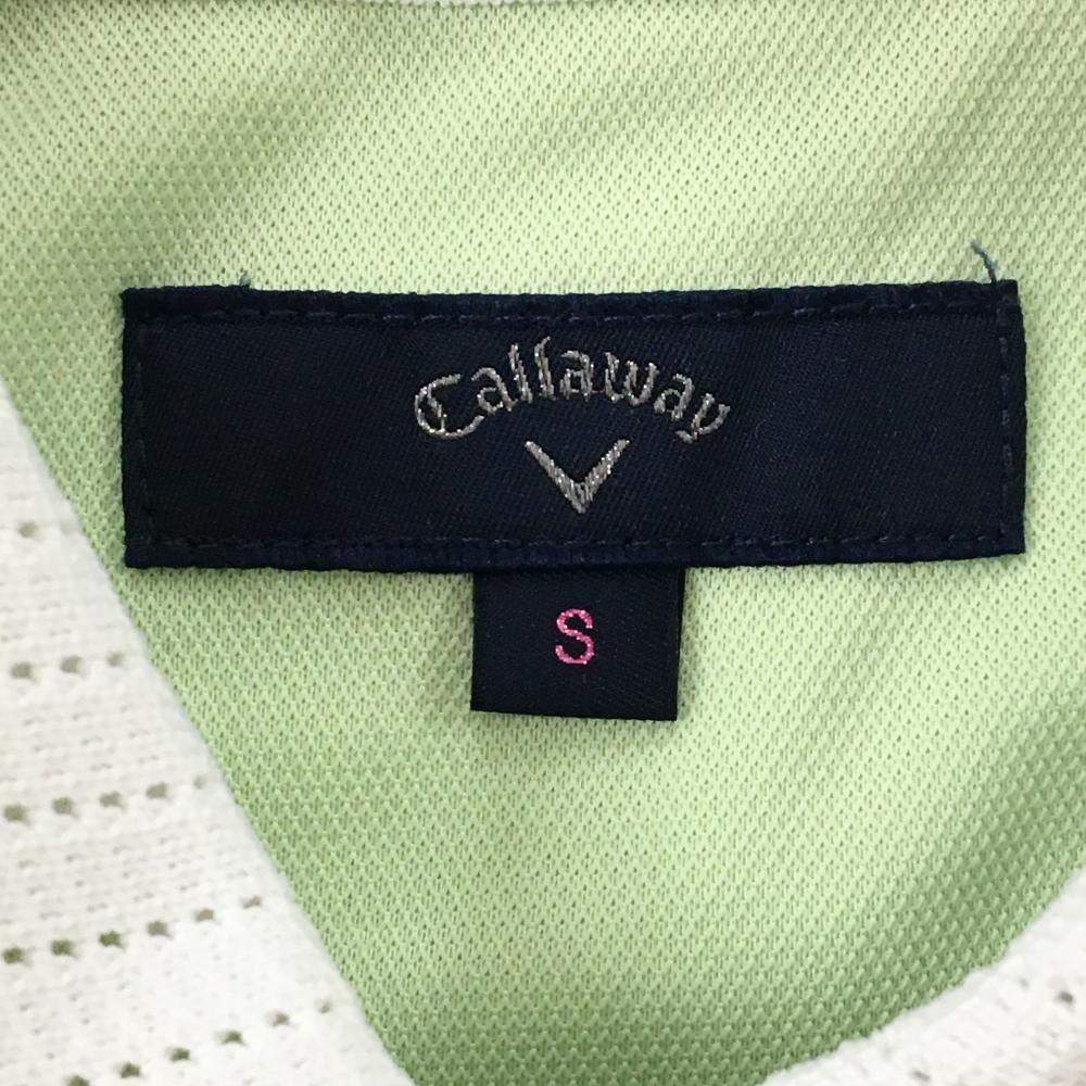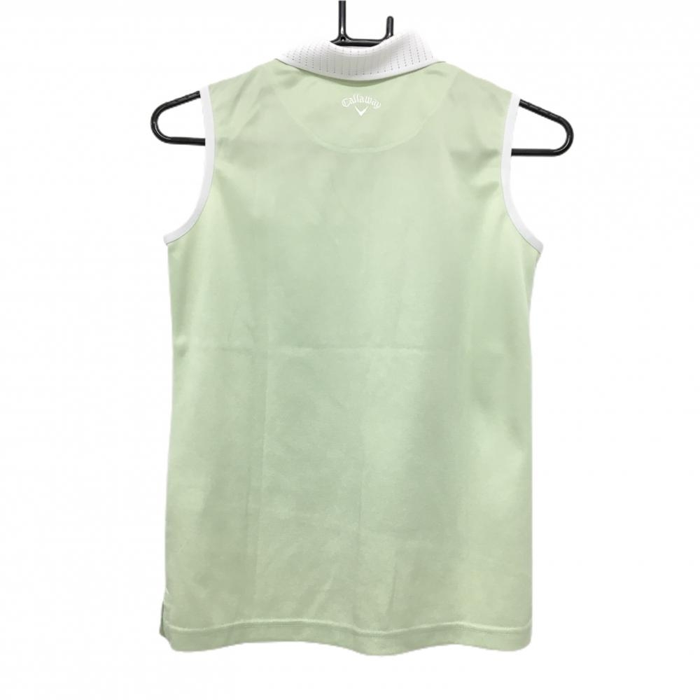 【超美品】キャロウェイ ノースリーブポロシャツ ライトグリーン×白 ロゴプリント 襟透かし編み レディース S ゴルフウェア Callaway
