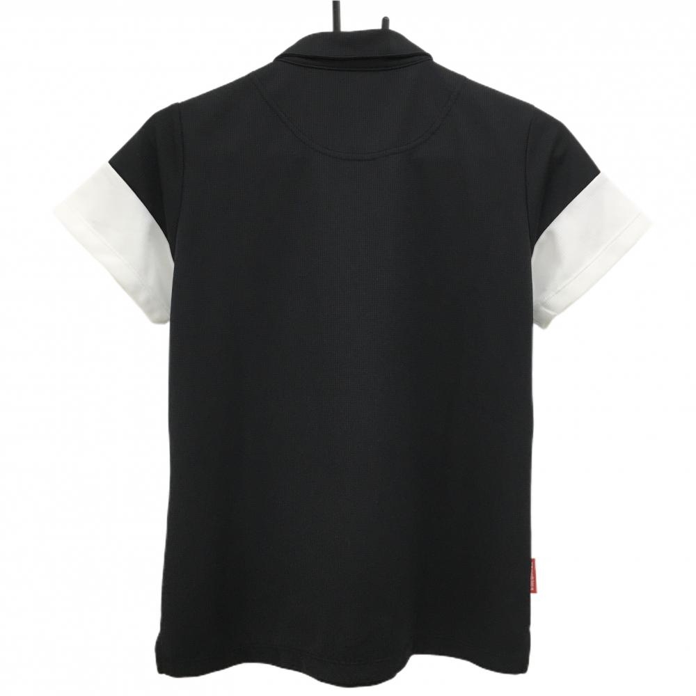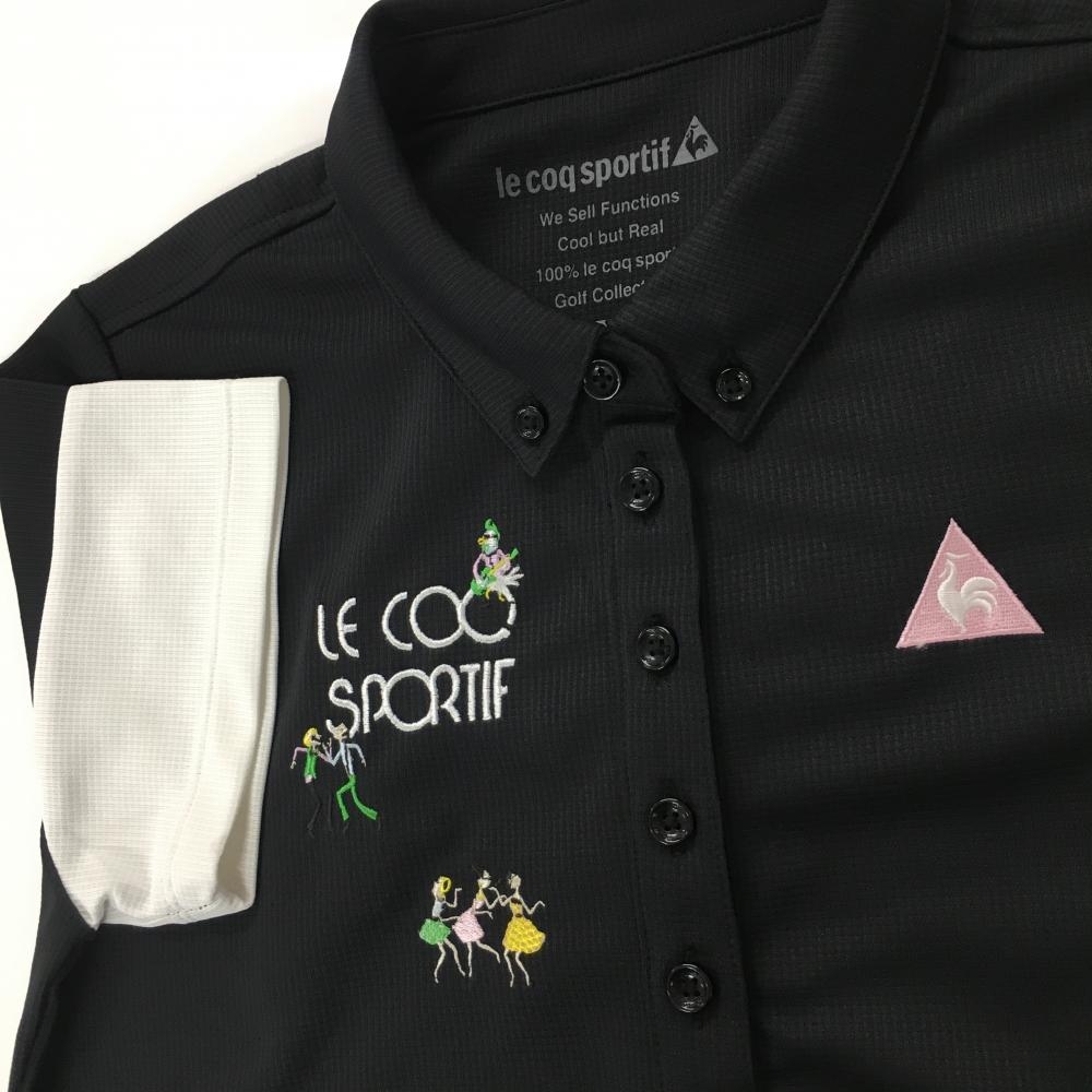 【超美品】ルコックゴルフ 半袖ポロシャツ 黒×白 ダンサー刺しゅう ボタンダウン レディース LL ゴルフウェア le coq sportif