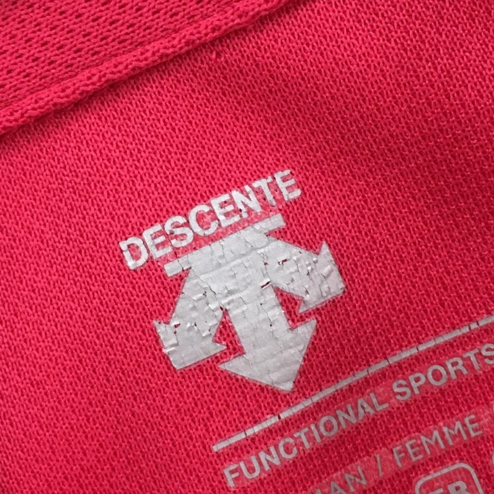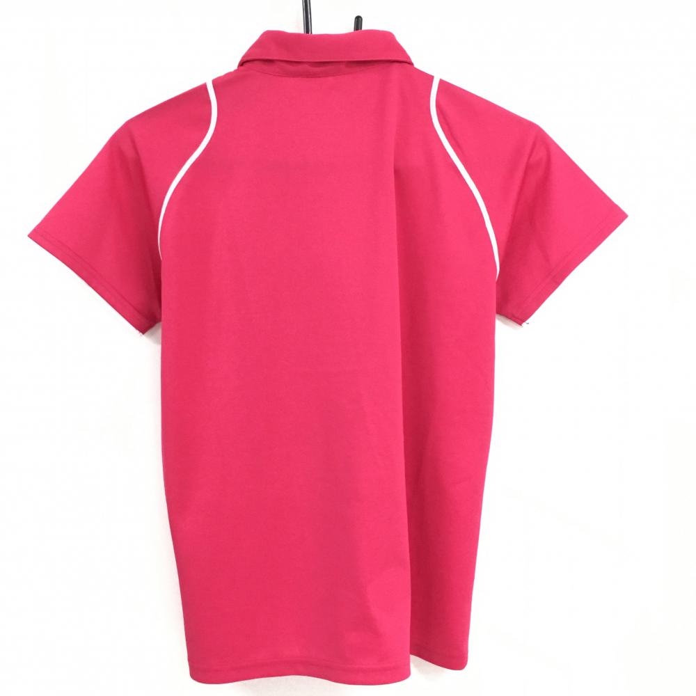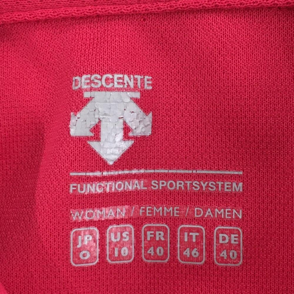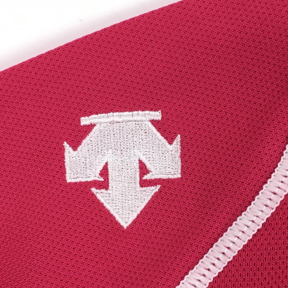 【美品】デサント 半袖ポロシャツ レッドピンク ロゴ刺しゅう レディース O ゴルフウェア DESCENTE