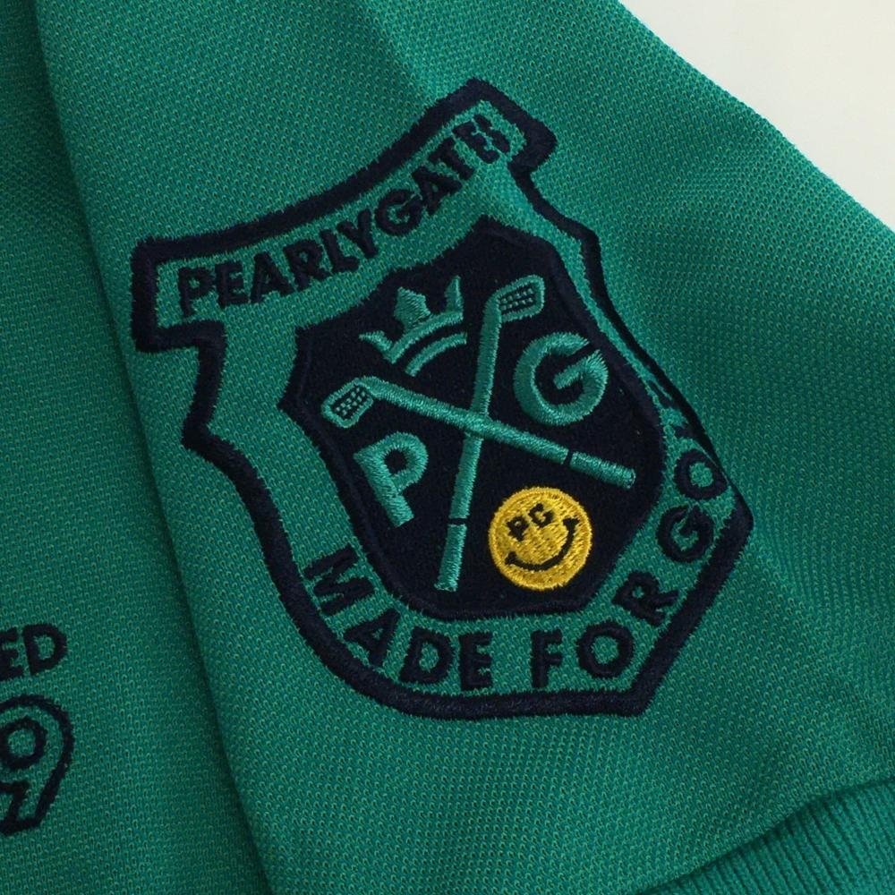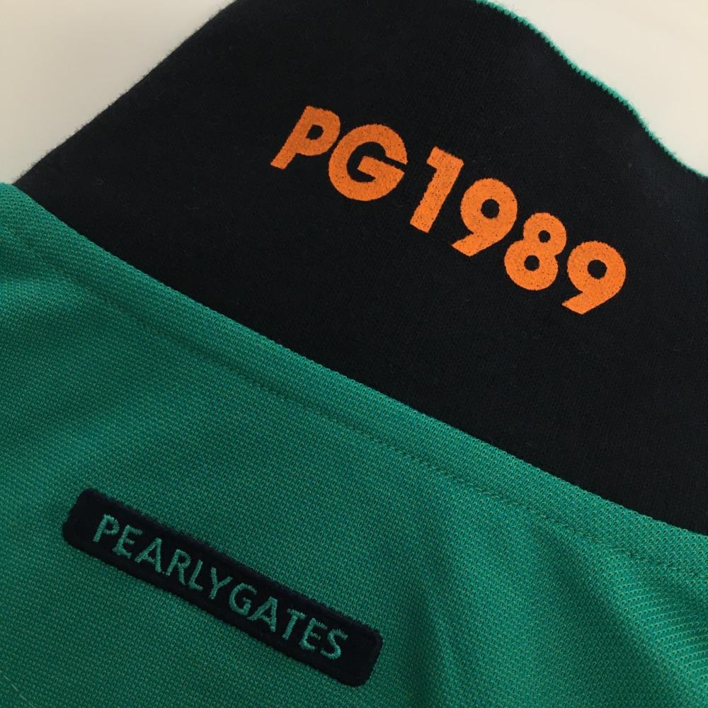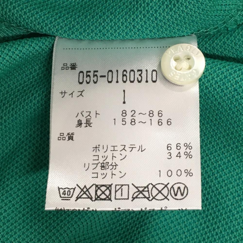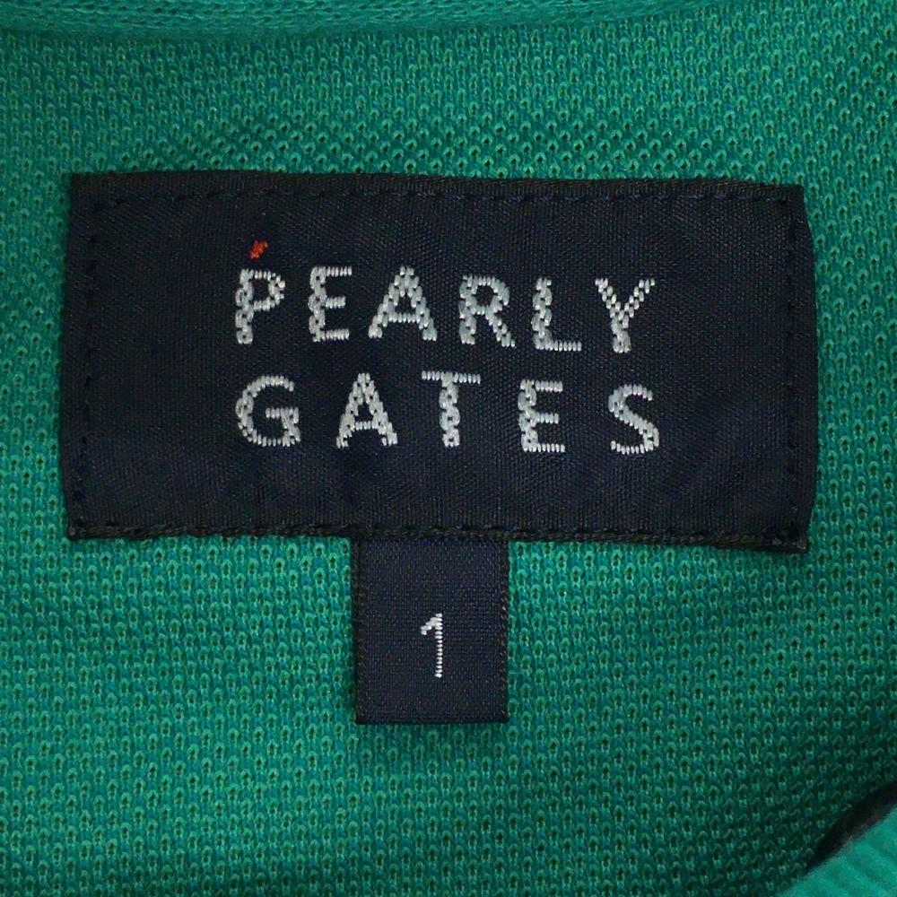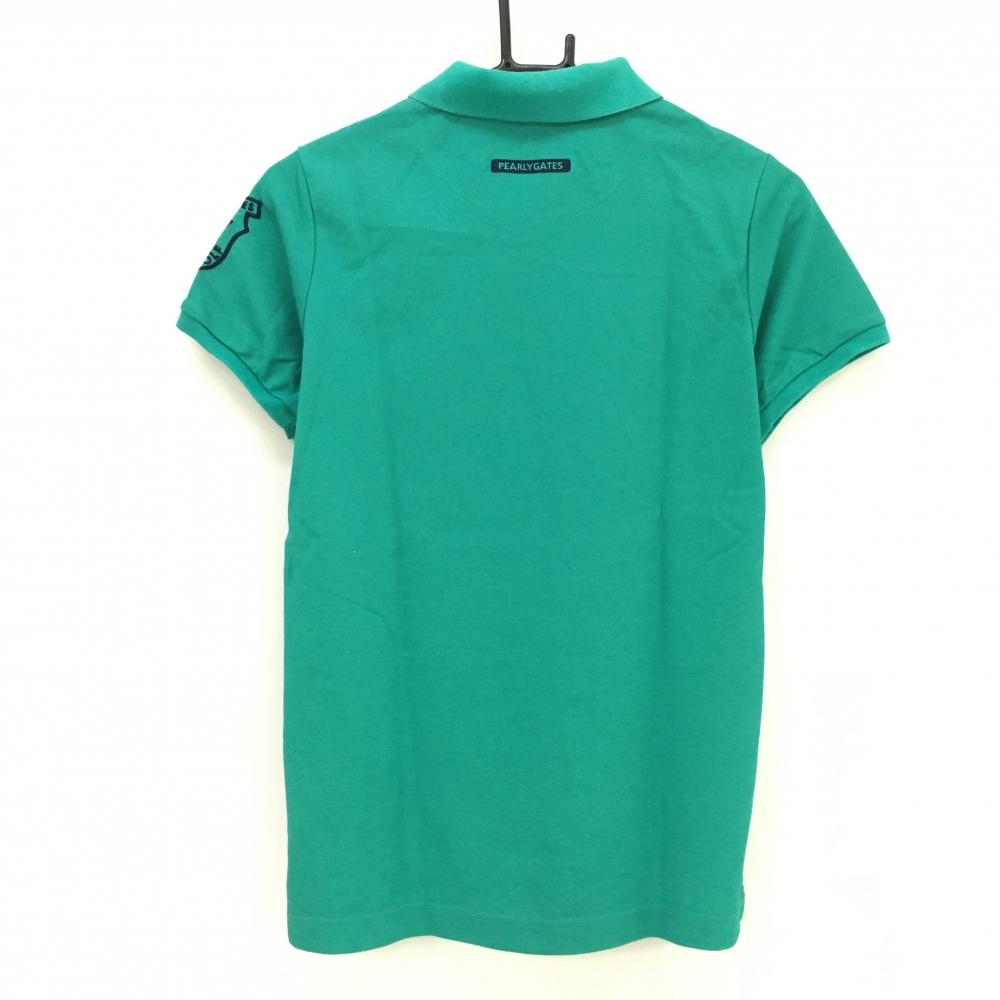 【超美品】パーリーゲイツ 半袖ポロシャツ グリーン×ネイビー フロントロゴ 袖ニコちゃん レディース 1(M) ゴルフウェア PEARLY GATES