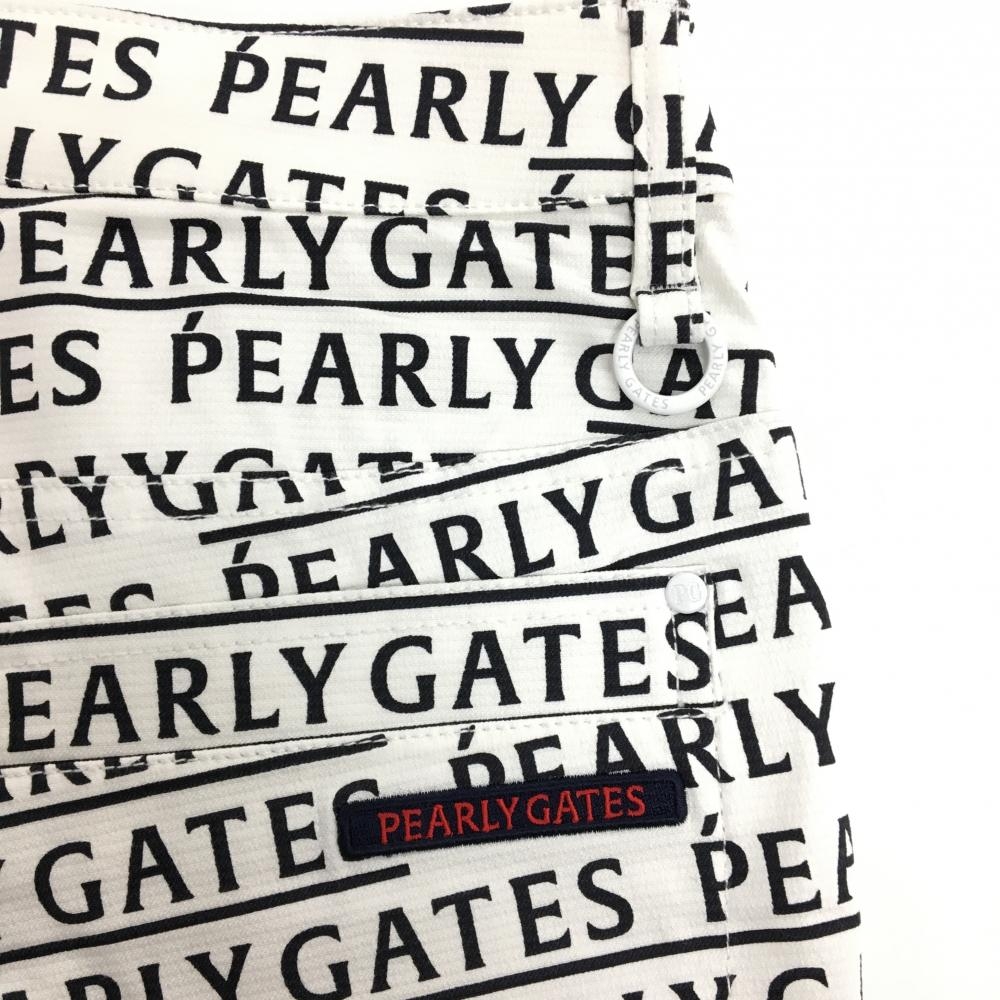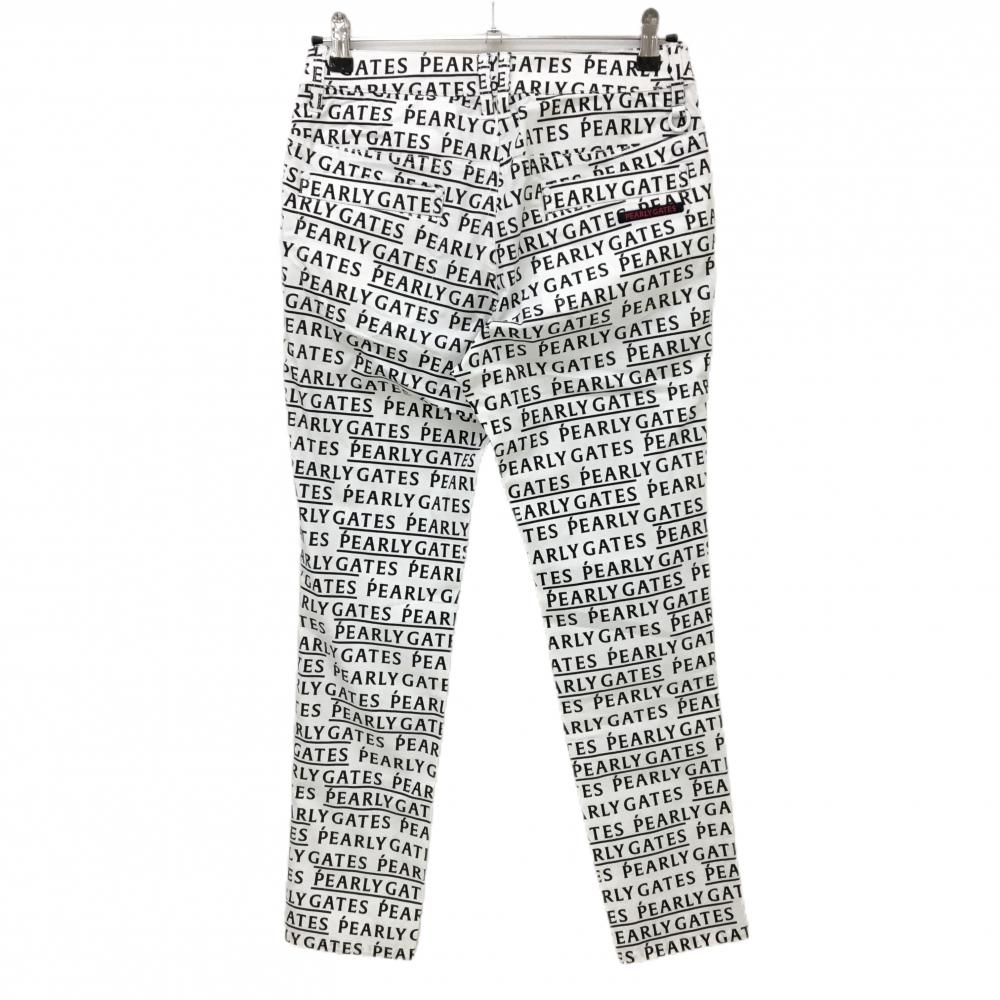 【超美品】パーリーゲイツ パンツ 白×黒 ロゴ総柄 ストレッチ レディース 1(M) ゴルフウェア PEARLY GATES