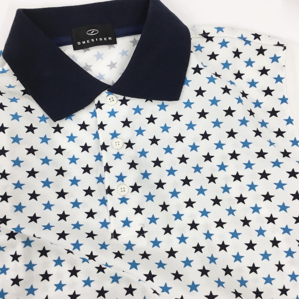 【美品】ワンサイダー 半袖ポロシャツ 白×ネイビー メンズ L ゴルフウェア ONESIDER
