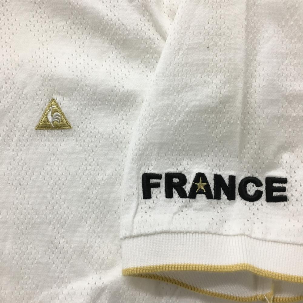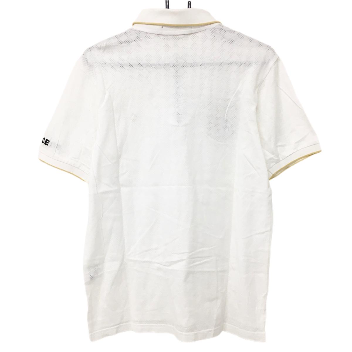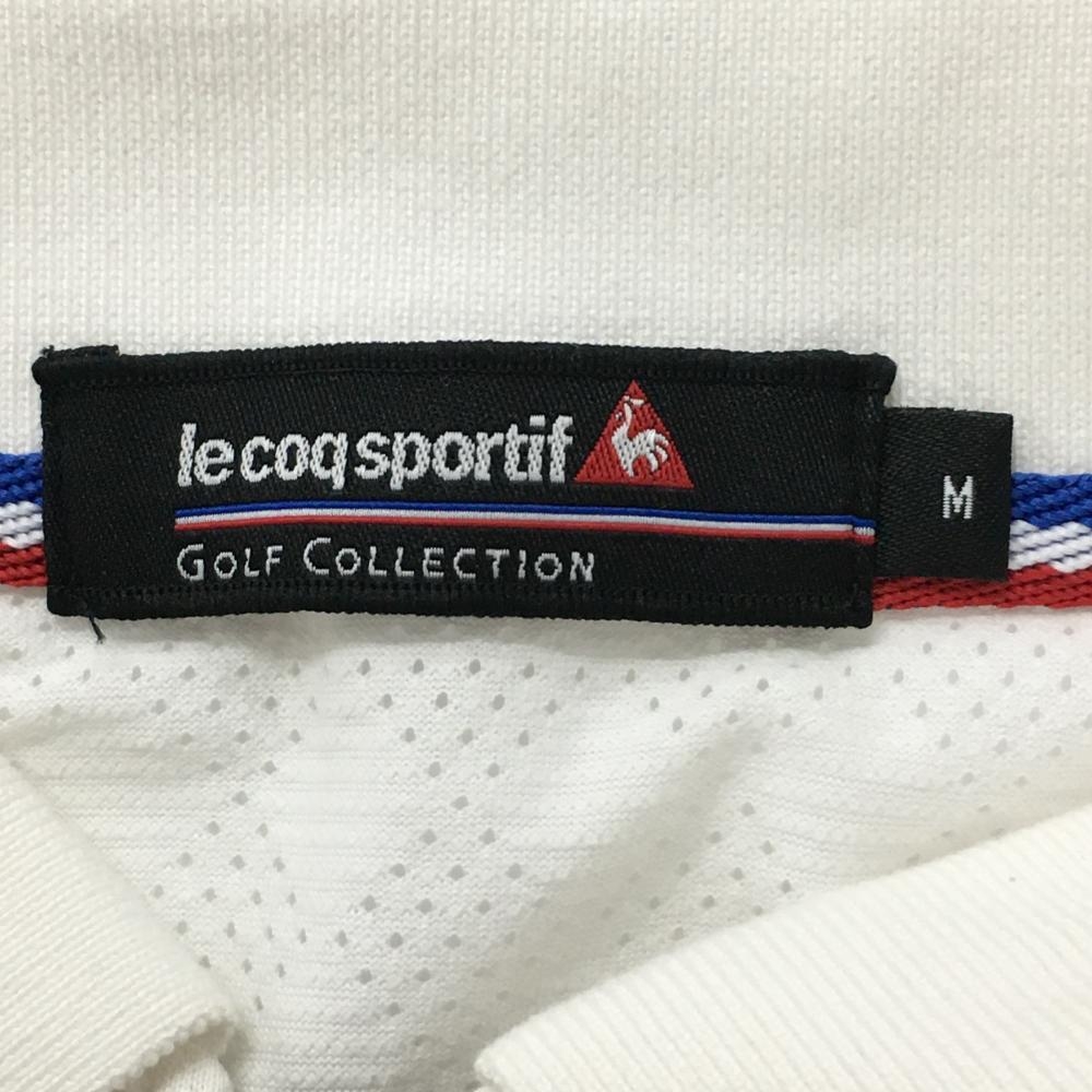 ルコックゴルフ 半袖ポロシャツ 白 ハーフジップ ボタンダウン 斜めブロックチェック地模様 メンズ M ゴルフウェア le coq sportif