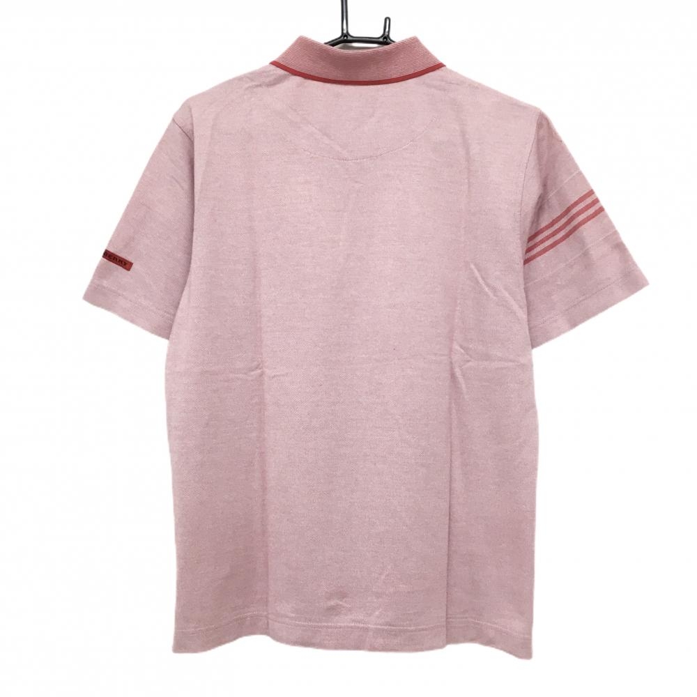【美品】バーバリーゴルフ 半袖ポロシャツ レッド×白 3ライン 袖ロゴ メンズ M ゴルフウェア BURBERRY GOLF