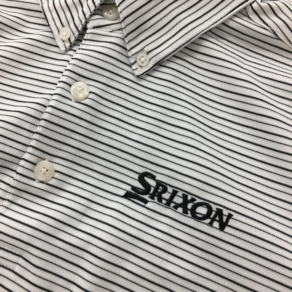 【超美品】スリクソン 半袖ポロシャツ 白×黒 ボーダー ロゴ刺しゅう メンズ M ゴルフウェア SRIXON
