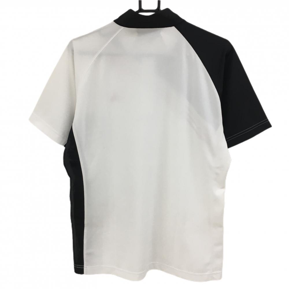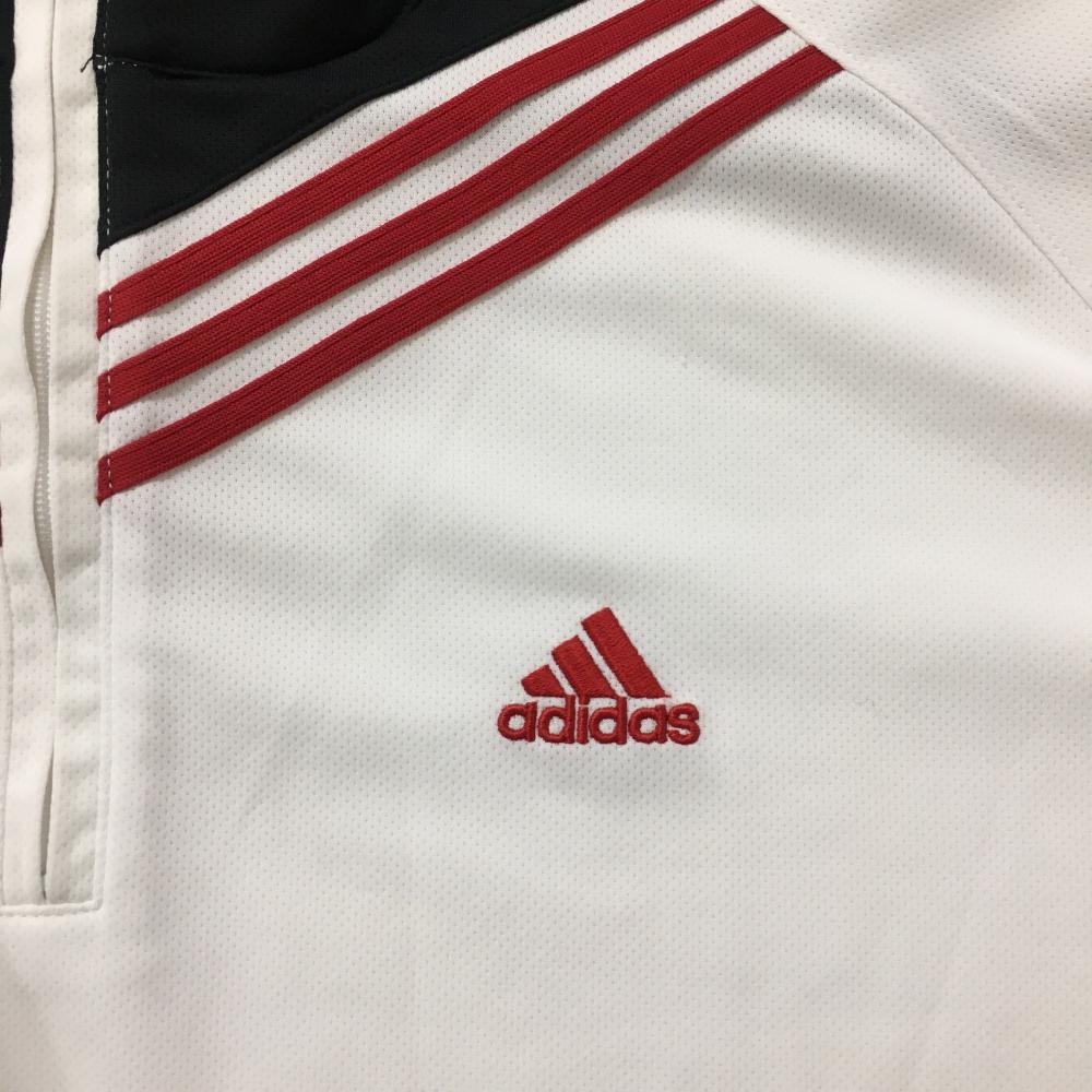 【超美品】アディダス 半袖ハイネックシャツ 白×黒 ロゴ赤 ハーフジップ 斜め3ライン メンズ O/XG ゴルフウェア adidas
