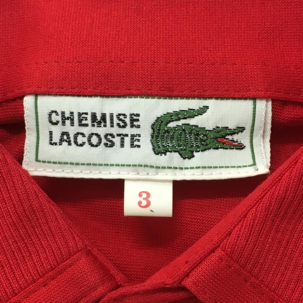 【美品】シュミーズラコステ 半袖ポロシャツ レッド コットン100% メンズ 3(M) ゴルフウェア CHEMISE LACOSTE