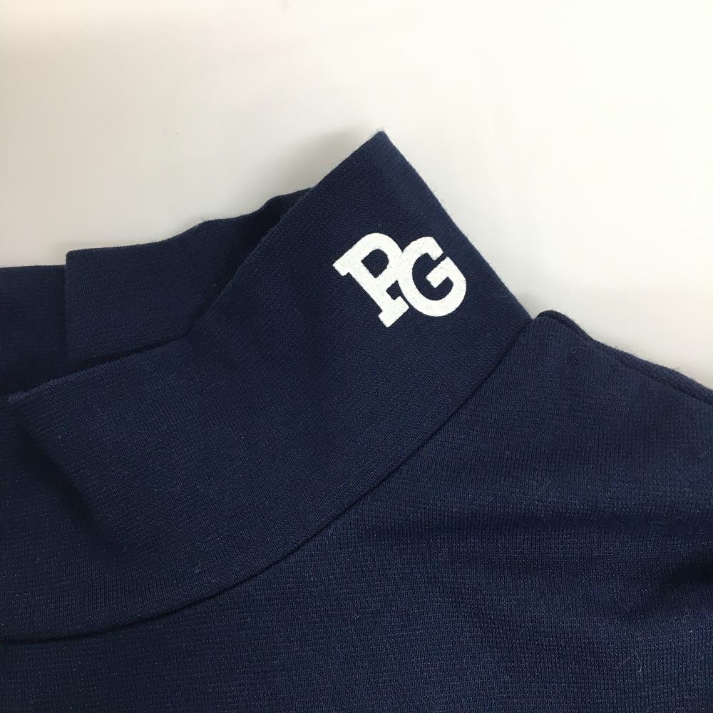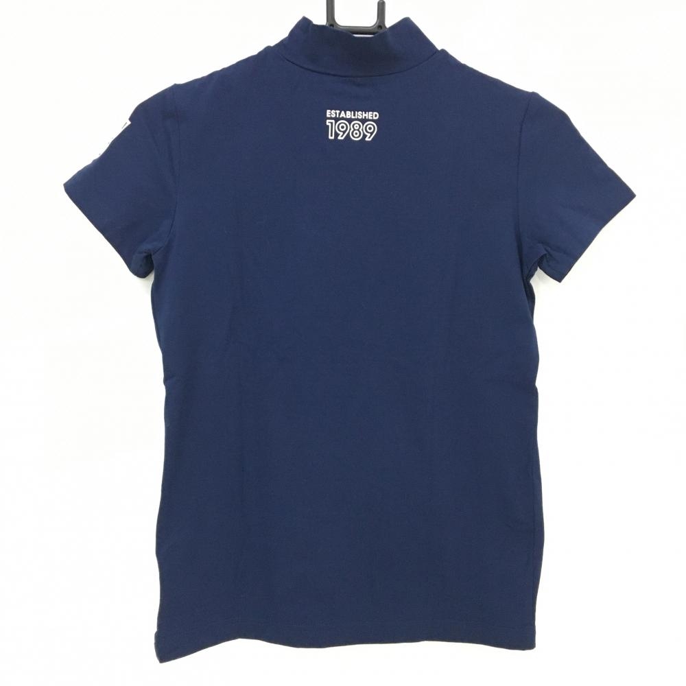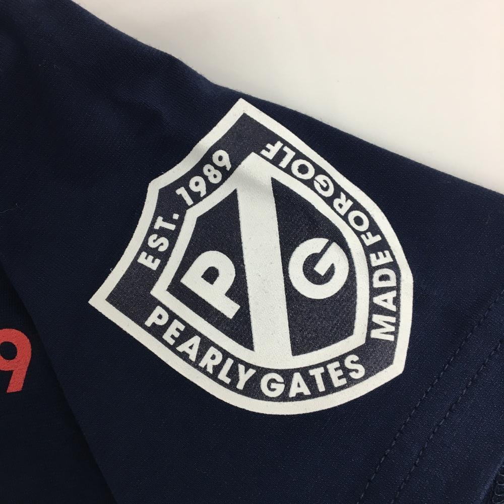 【美品】パーリーゲイツ 半袖ハイネックシャツ ネイビー×白×レッド フロントロゴプリント レディース 0(S) ゴルフウェア PEARLY GATES