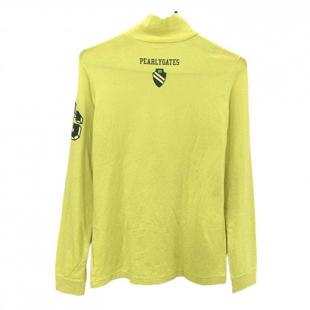 【美品】パーリーゲイツ 長袖ハイネックシャツ イエロー系 袖ロゴプリント レディース 2(L) ゴルフウェア PEARLY GATES