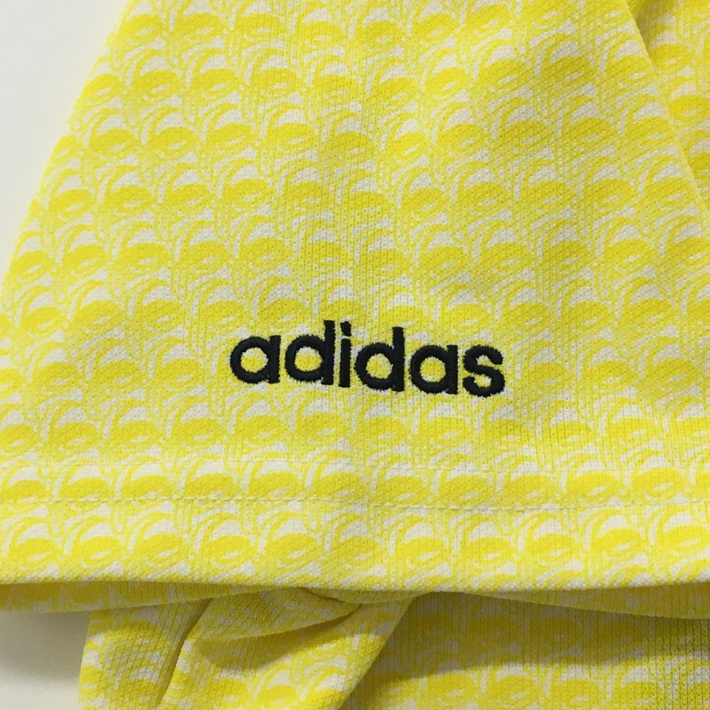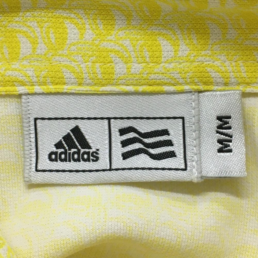 【超美品】アディダス 半袖ポロシャツ 白×イエロー 総柄 ロゴ刺しゅう レディース M/M ゴルフウェア adidas