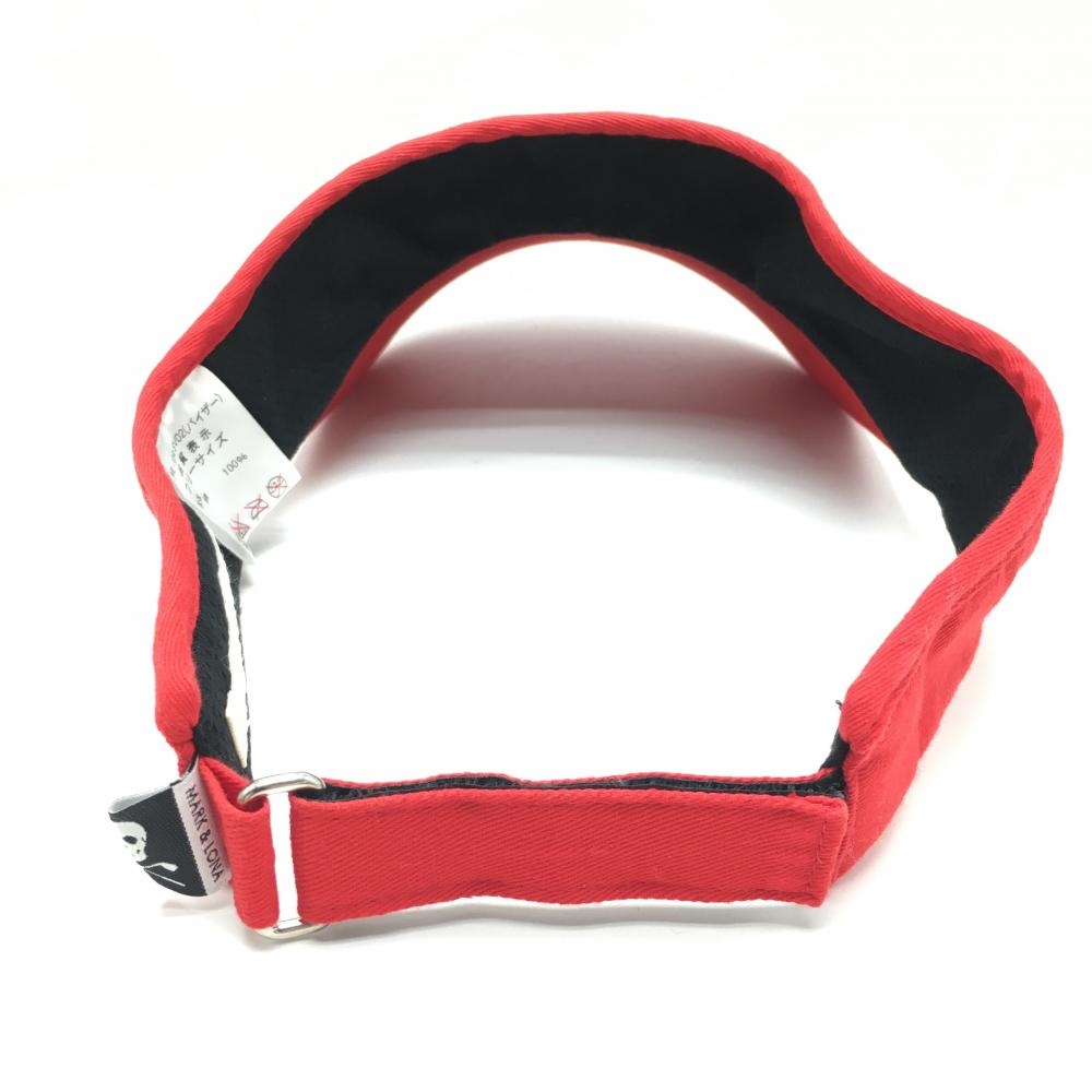 【美品】マークアンドロナ サンバイザー レッド スカルワッペン 綿100% フリーサイズ ゴルフウェア MARK&LONA