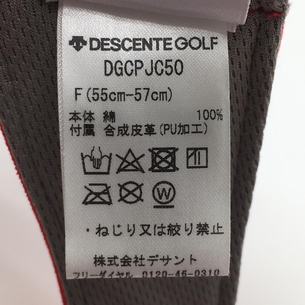 【美品】デサントゴルフ サンバイザー レッド×白 立体ロゴ刺しゅう 中田英寿 F(55cm-57cm) ゴルフウェア DESCENTE