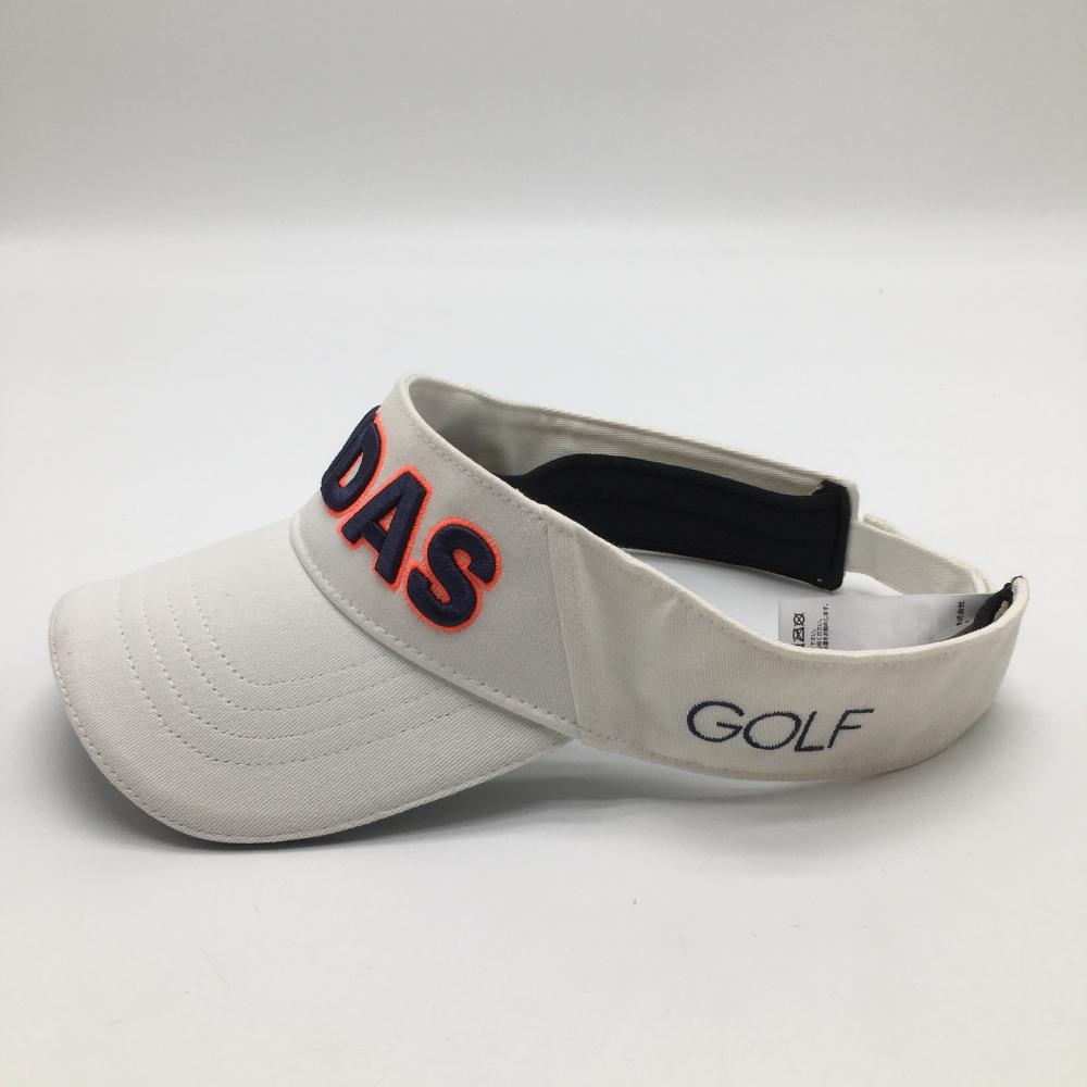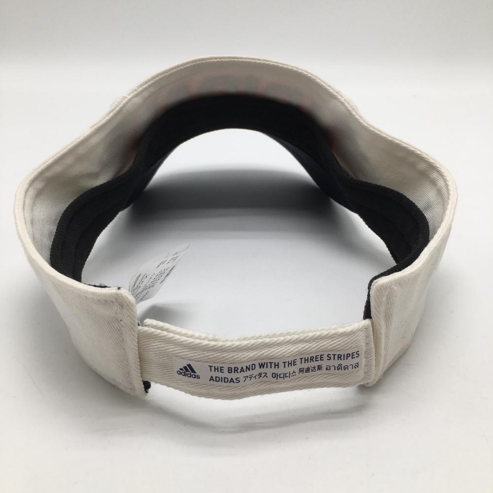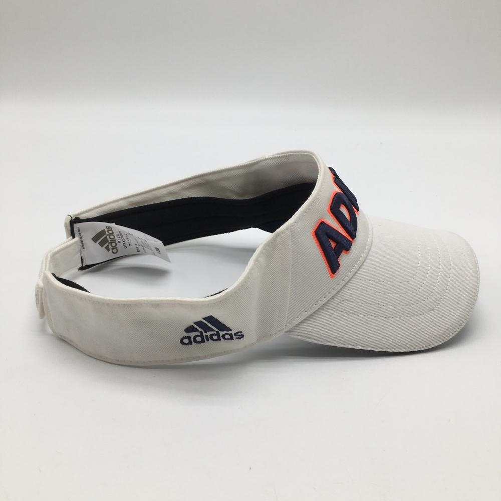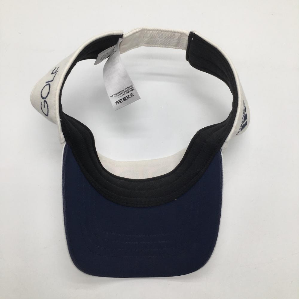 【美品】アディダス サンバイザー 白×ネイビー 立体ロゴ刺しゅう OSFX(57-60cm) フリーサイズ ゴルフウェア adidas