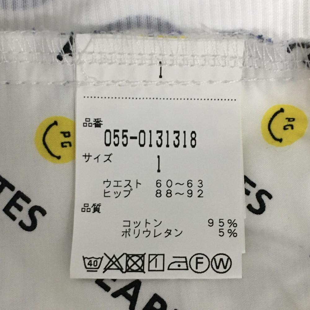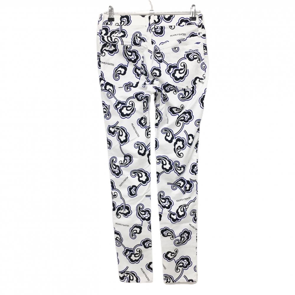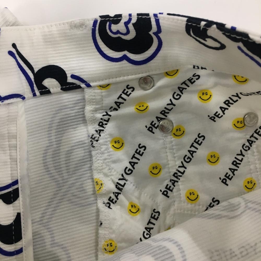 【超美品】パーリーゲイツ パンツ 白×ダークネイビー×ブルー 総柄 ロゴ総柄 裏地ニコちゃん レディース 1(M) ゴルフウェア PEARLY GATES