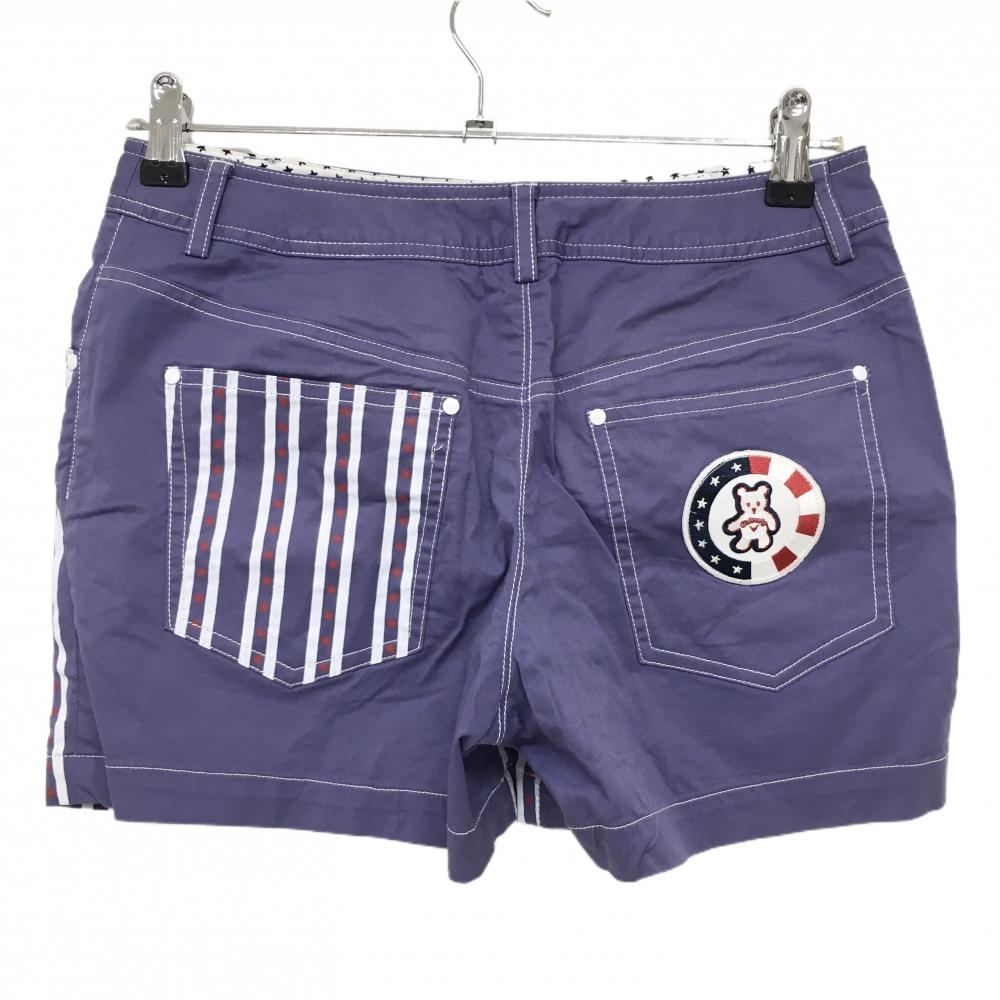 【美品】キャロウェイ ショートパンツ ライトパープル系×白 ストライプ 星柄 ベア レディース M ゴルフウェア Callaway