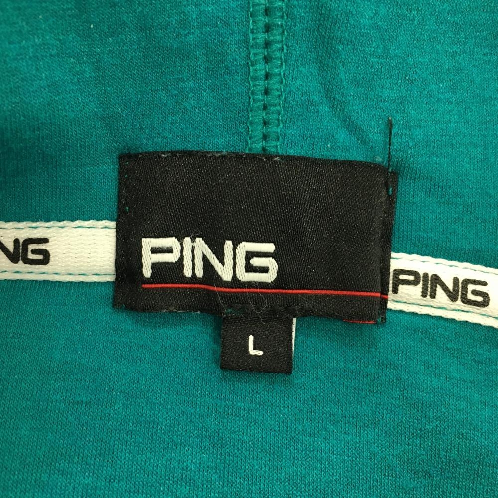 ピン ジップパーカー ブルーグリーン 胸元ネイビープリント メンズ L ゴルフウェア PING