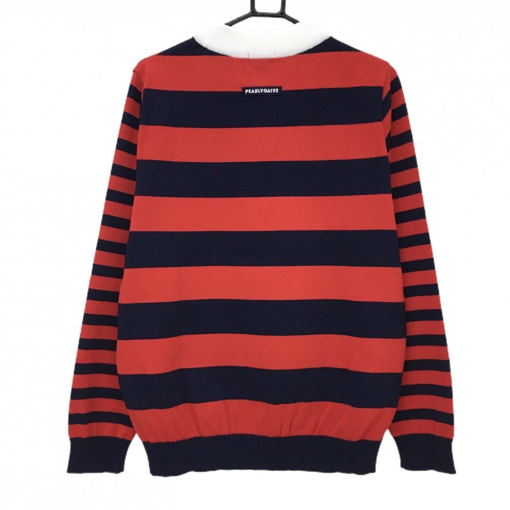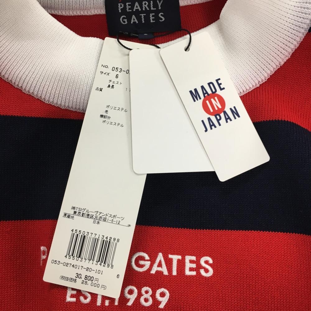 【新品】パーリーゲイツ ハイネックセーター レッド×ネイビー ボーダー ニット メンズ 6(XL) ゴルフウェア PEARLY GATES