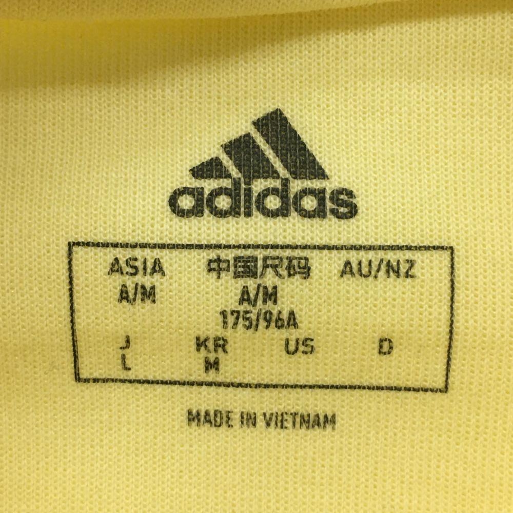 【美品】アディダス ハイネックトレーナー イエロー ハーフジップ ロゴプリント メンズ L ゴルフウェア adidas