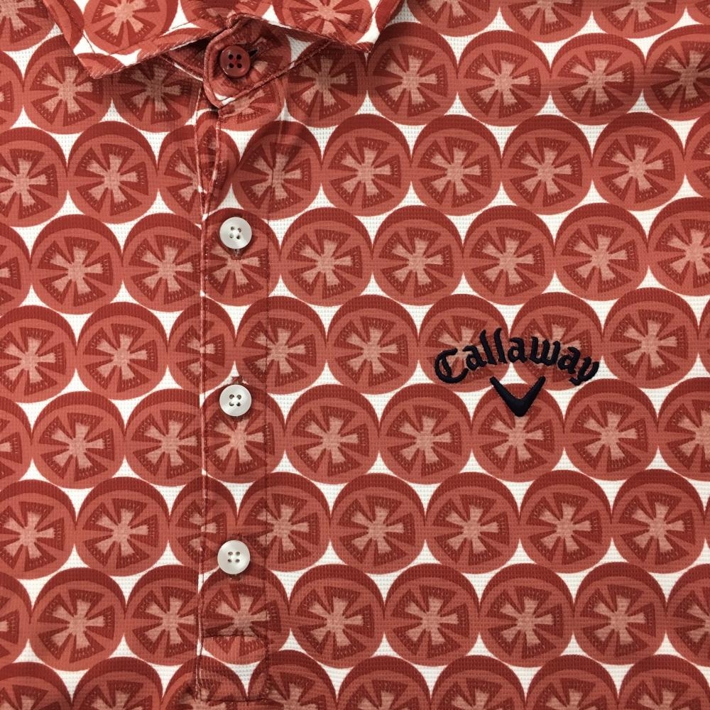 【美品】キャロウェイ 半袖ポロシャツ レッド系×白 トマト柄 メンズ L ゴルフウェア Callaway