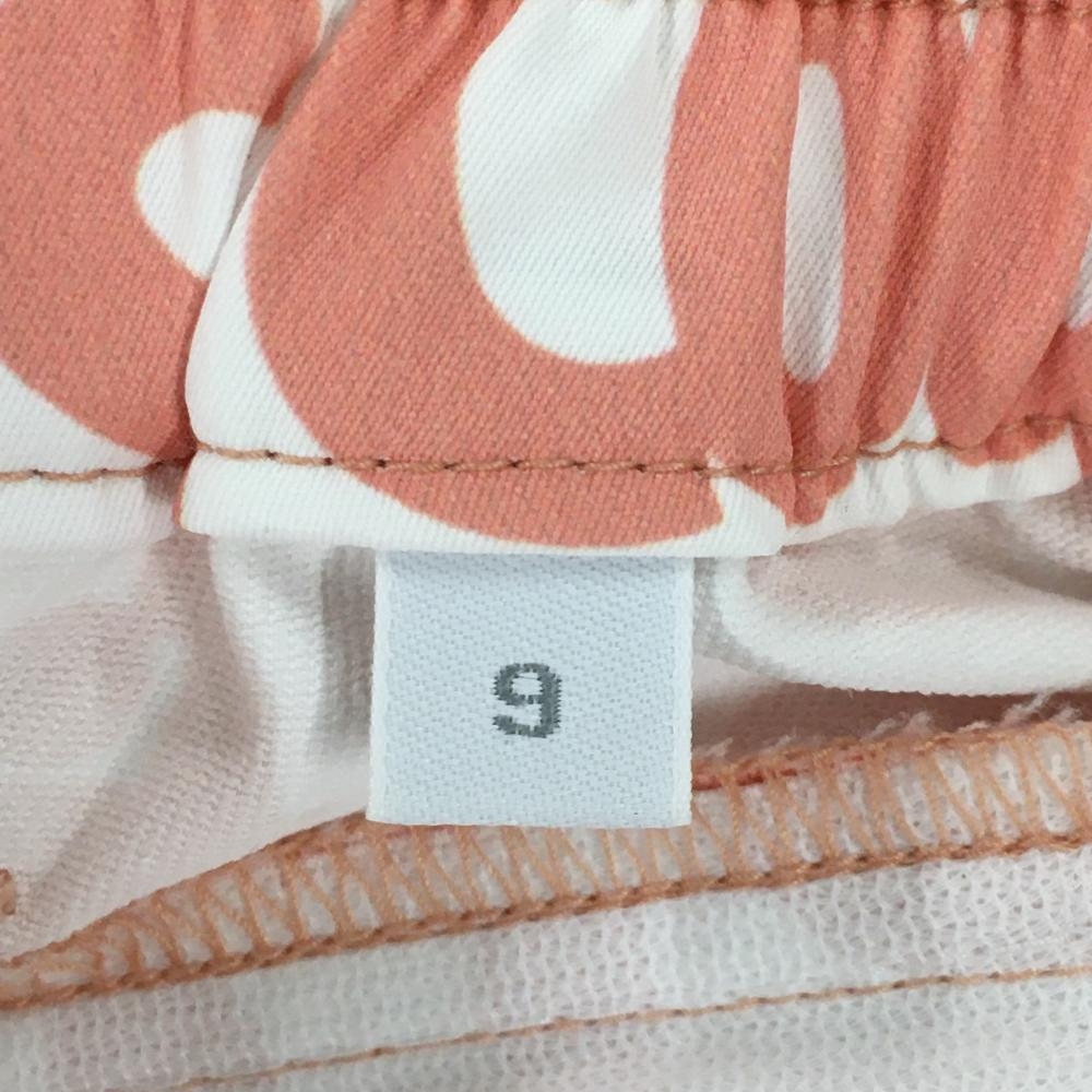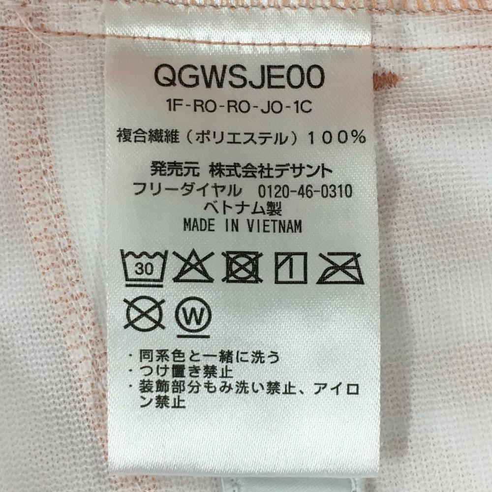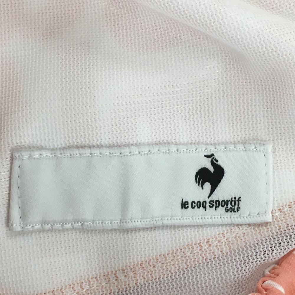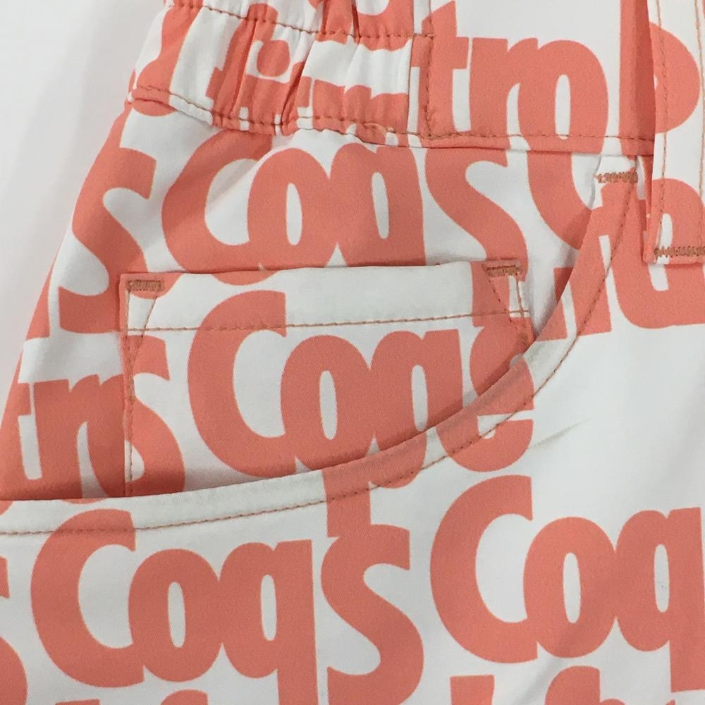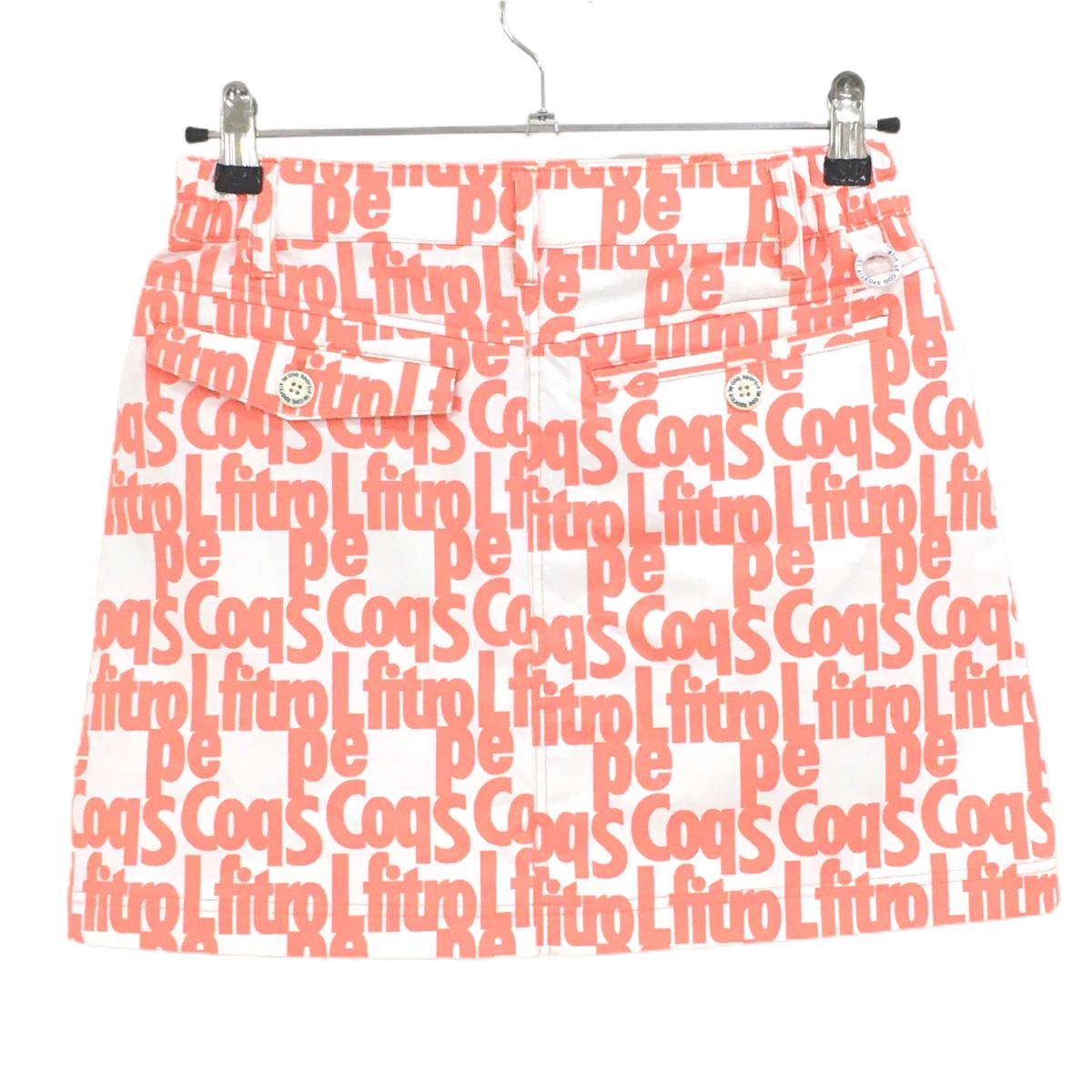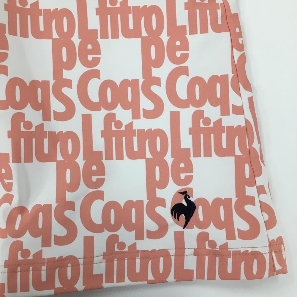 【美品】ルコックゴルフ スカート 白×サーモンオレンジ系 英字総柄 サイドウエストゴム レディース 9 ゴルフウェア le coq sportif