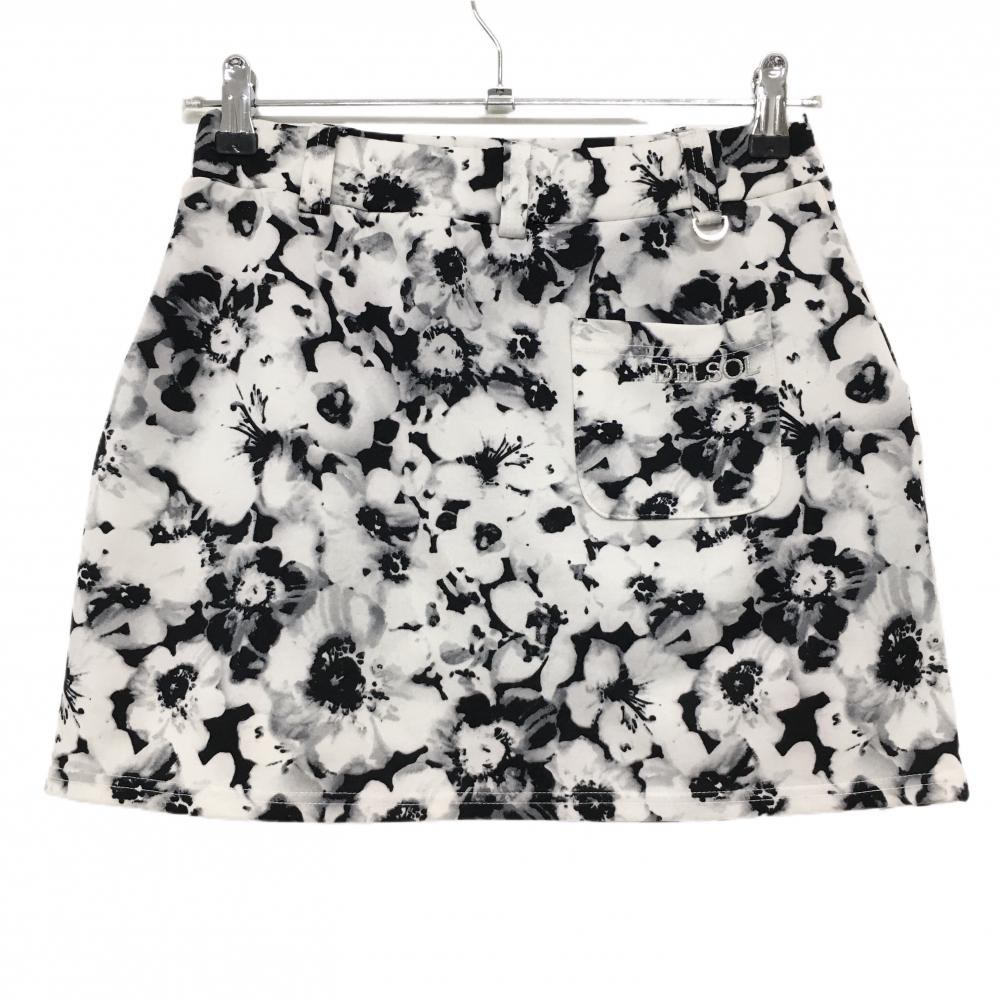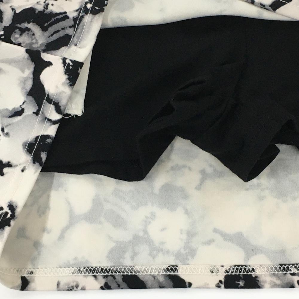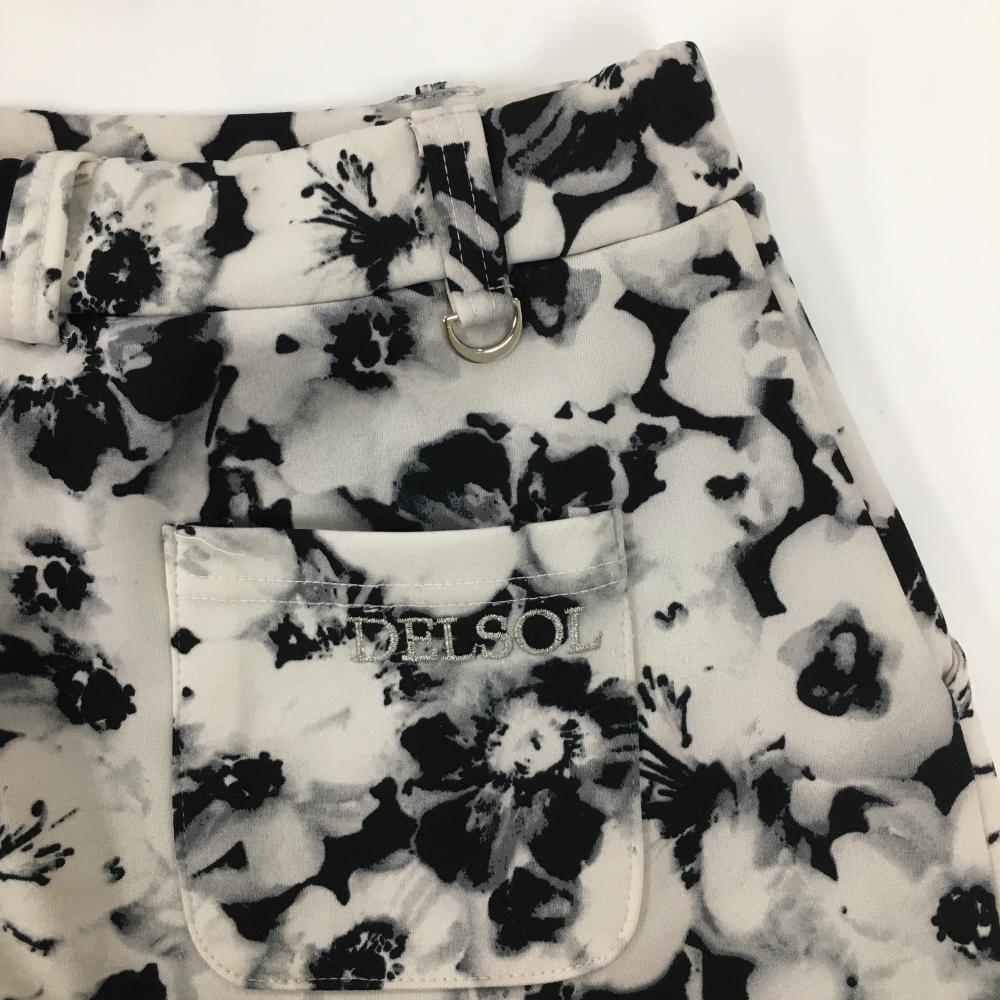 【美品】デルソル ストレッチスカート 白×黒 花柄 ウエストゴム 内側インナーパンツ レディース M ゴルフウェア DELSOL