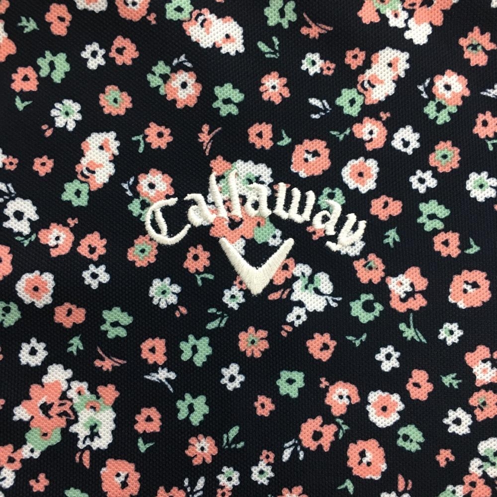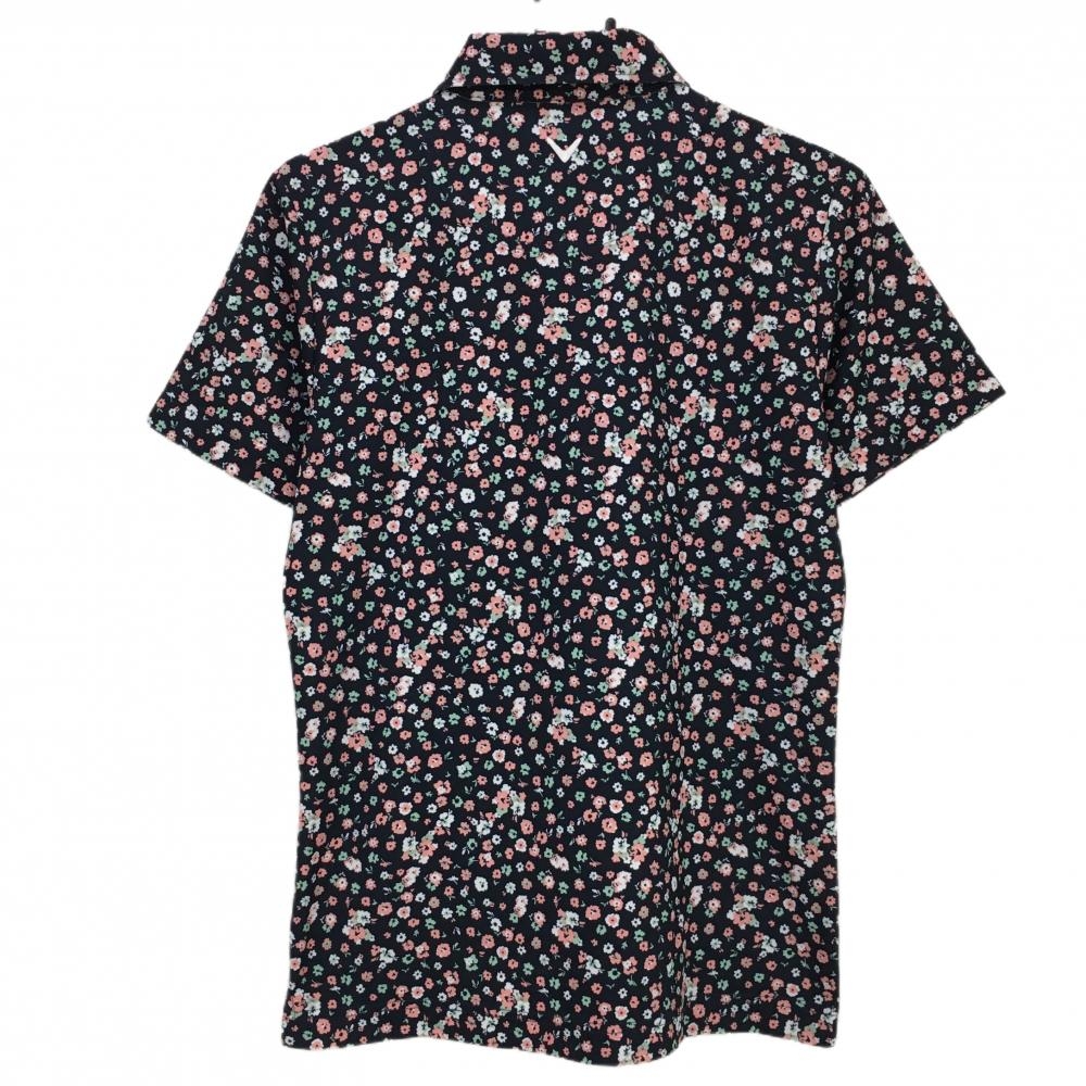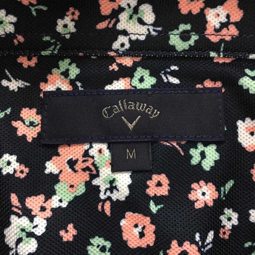 【超美品】キャロウェイ 半袖ポロシャツ ネイビー×ピンク 花柄 メンズ M ゴルフウェア Callaway