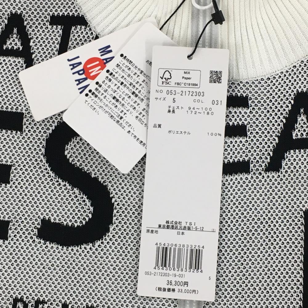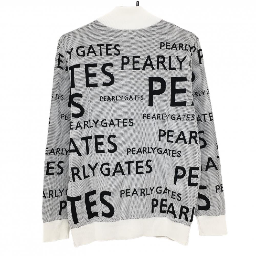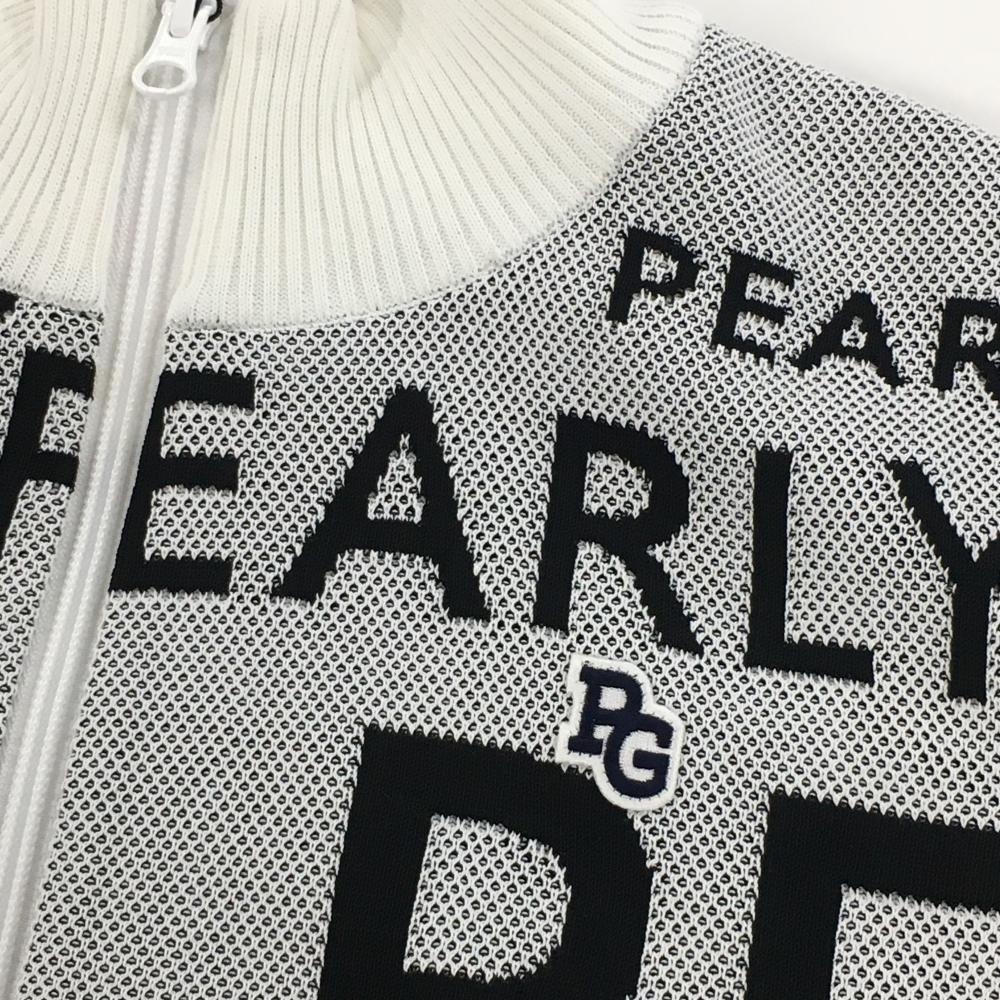 【新品】パーリーゲイツ ニットジャケット 白×黒 ロゴ総柄 メンズ 5(L) ゴルフウェア PEARLY GATES