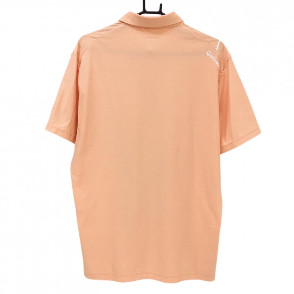 【超美品】テーラーメイド 半袖ポロシャツ サーモンオレンジ×白 肩ロゴ メンズ XO(XXL) ゴルフウェア TaylorMade