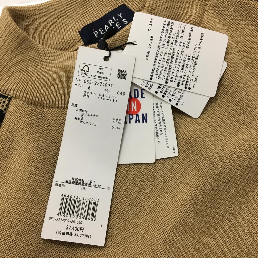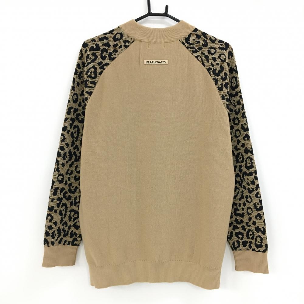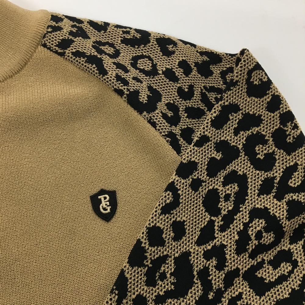【新品】パーリーゲイツ セーター ライトブラウン×黒 袖レオパード ニット メンズ 6(XL) ゴルフウェア PEARLY GATES