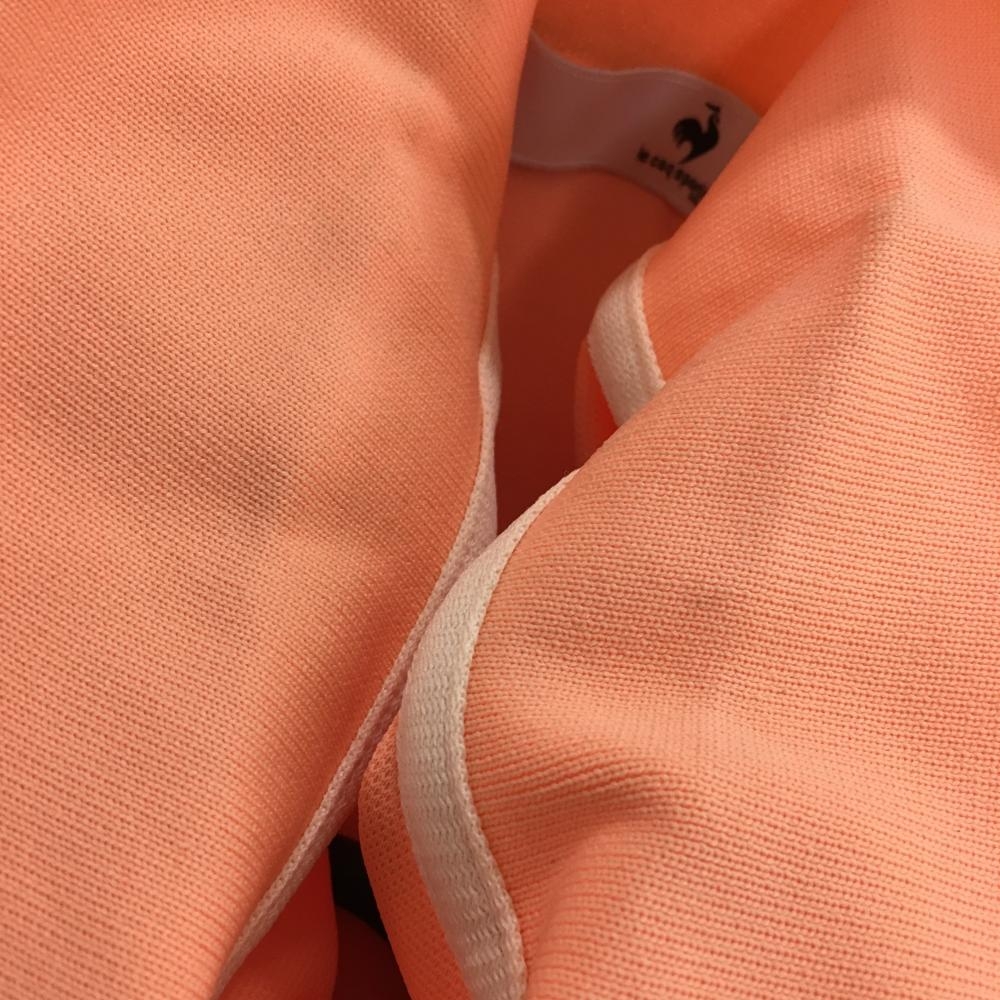 ルコックゴルフ 半袖ポロシャツ サーモンオレンジ バックプリント ロゴ白 レディース M ゴルフウェア le coq sportif